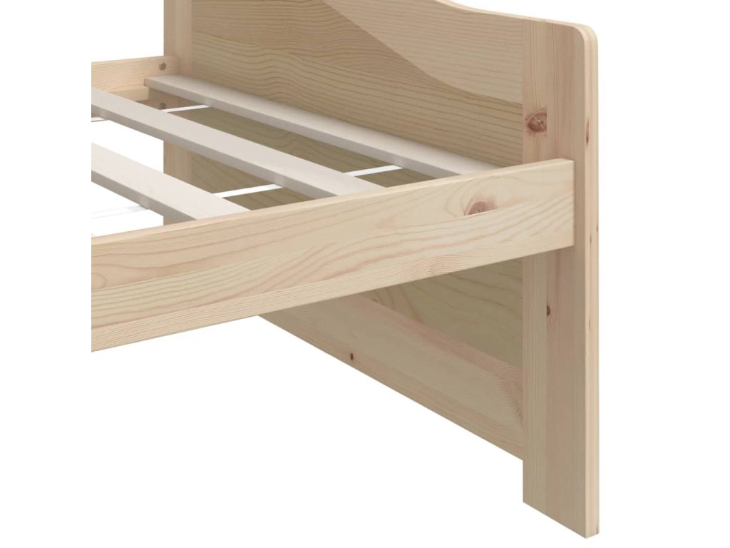Rozkladacia pohovka je vyrobená z masívneho borovicového dreva, takže je pevná a stabilná. Pevné lamely zároveň poskytujú potrebnú oporu a pohodlie.