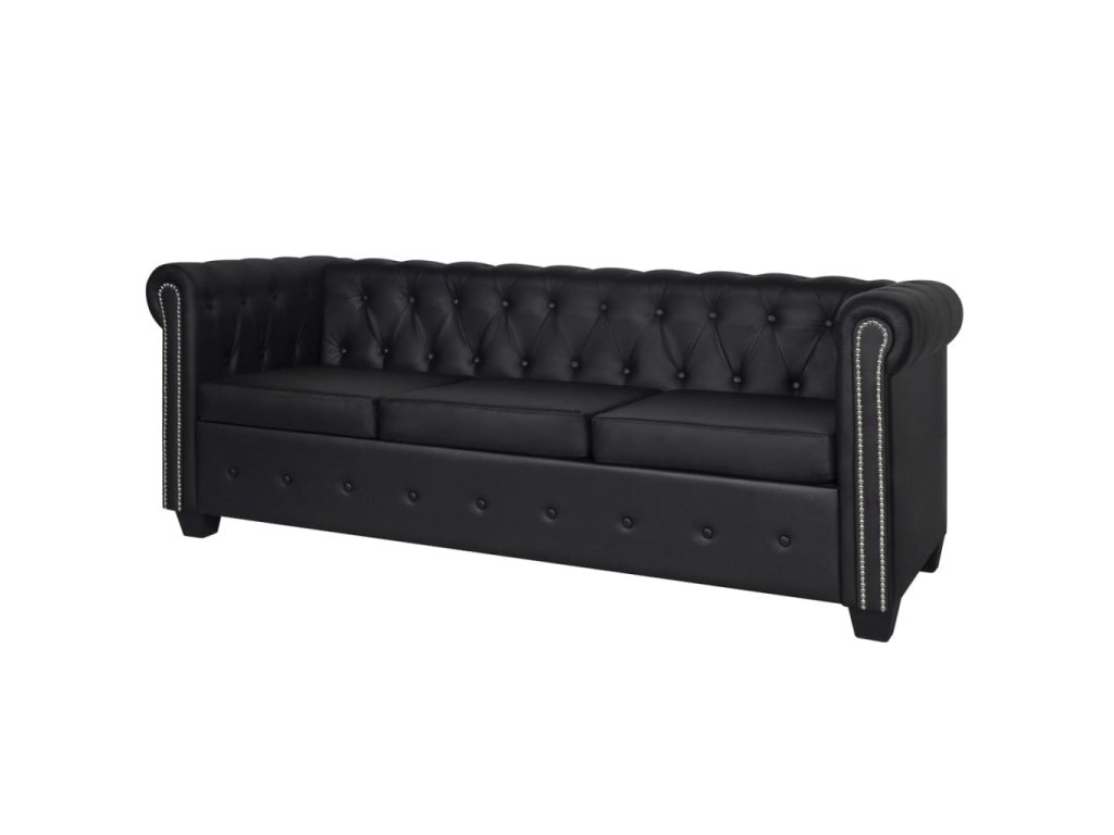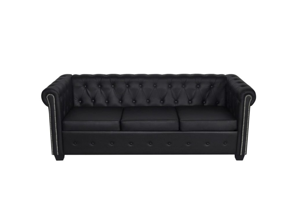 Táto pohovka Chesterfield stelesňuje perfektnú kombináciu pohodlia a sofistikovanosti a stane sa tak skvelým doplnkom do domácnosti alebo do kancelárie. 3-miestna pohovka s ozdobnými gombíkmi na operadlách a dekoratívnym lemom na elegantne zahnutých opierkach na ruky dodá vášmu interiéru nádych luxusu, noblesy a štýlu.