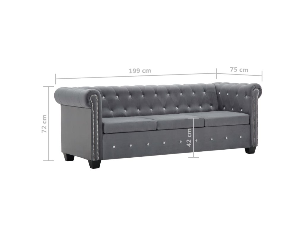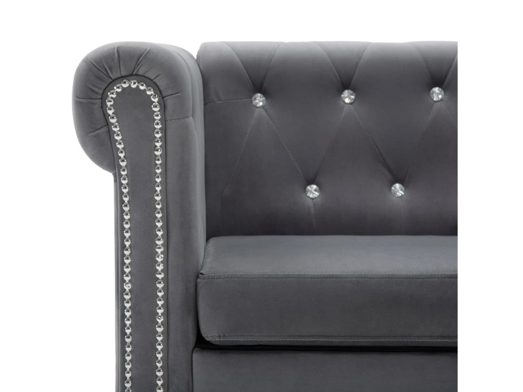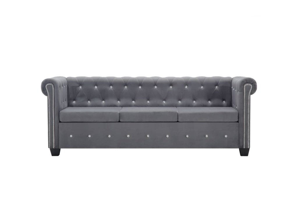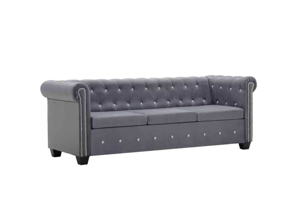Naša elegantná pohovka chesterfield prešívaná trblietavými krištáľovými gombíkmi vnesie do vašej obývačky, kancelárie či spálne nádych luxusu, elegancie a sofistikovanosti.