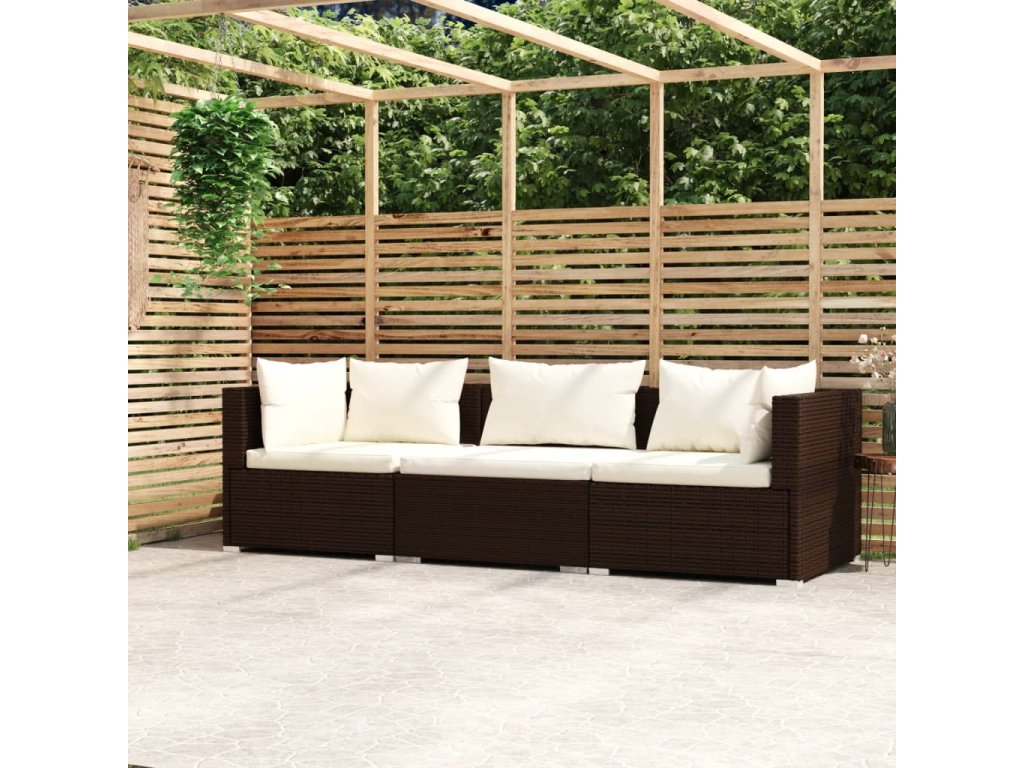 Táto sedačka na terasu má pevný oceľový rám s práškovým nástrekom a plastové chrómové nožičky, ktoré sú veľmi trvácne. Trojmiestna pohovka je navrhnutá z vodeodolného PE ratanu, vďaka čomu je odolná a vhodná na každodenné používanie vonku. Vďaka ľahkej konštrukcii sa záhradná sedačka v prípade potreby ľahko presúva. Hrubo polstrované a odnímateľné vankúše zaručia pohodlie pri sedení. Modulárny dizajn navyše umožňuje nastaviť súpravu do ľubovoľného usporiadania, alebo ju skombinovať s inými modulárnymi časťami nábytku presne podľa vašich potrieb!