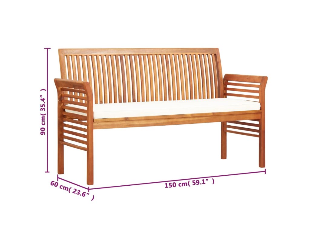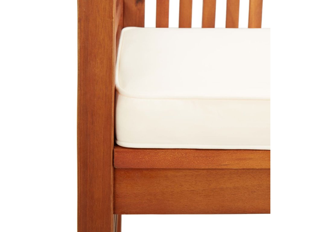 Rám z akáciového dreva s prírodnou olejovou povrchovou úpravou dodáva tradičný a prívetivý vzhľad vašim vonkajším priestorom. Lavica je odolná a vydrží dlhé roky používania. Súčasťou balenia sú pohodlné podušky pre čo najlepší odpočinok. Vodeodolné podušky sa navyše ľahko čistia. Ideálne sa hodí pre nedeľné pohodová popoludnie s knihou alebo ako dodatočné miesto na sedenie pre hostí.