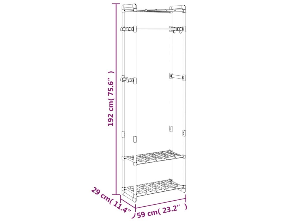 - Priestorovo úsporný dizajn: Tento vešiakový stojan môže maximalizovať váš obmedzený priestor a poskytne praktické úložné riešenie vecí do chodby, obývacej izby, spálni, šatni, práčovni atď.