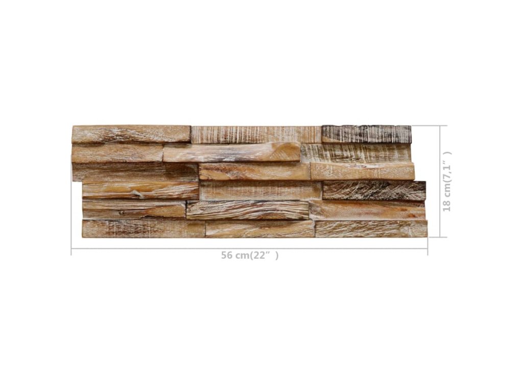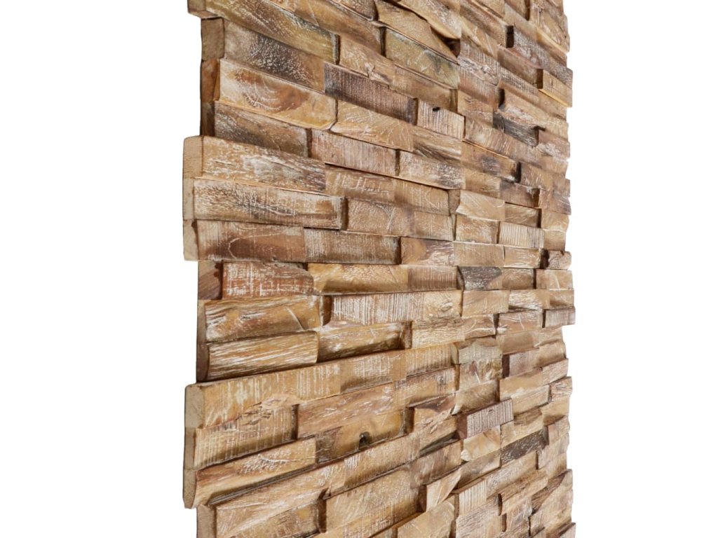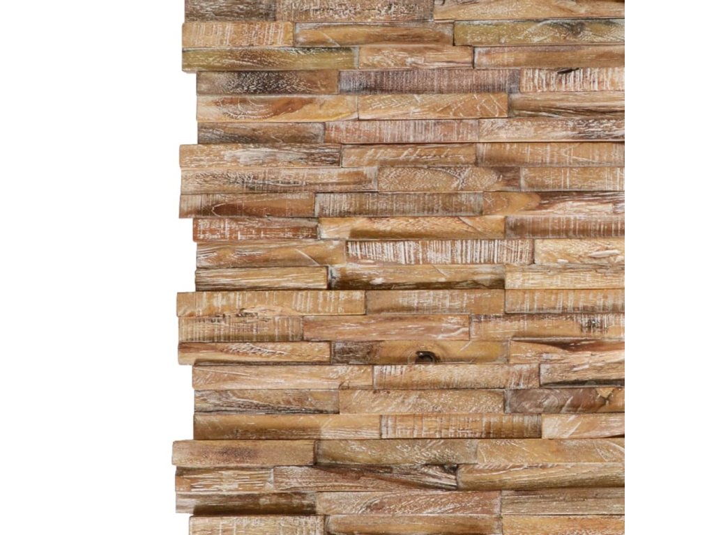 Nástenné obkladové dosky sú vyrobené z odolného, pevného tíkového dreva s bielou premývanou povrchovou úpravou, čo im dodáva rustikálny vzhľad pripomínajúci hromadu dosiek. Tieto krásne dekoratívne nástenné panely sa veľmi ľahko inštalujú. Dodávka obsahuje 10 kusov, čo predstavuje celkovú plochu 1,01 m².