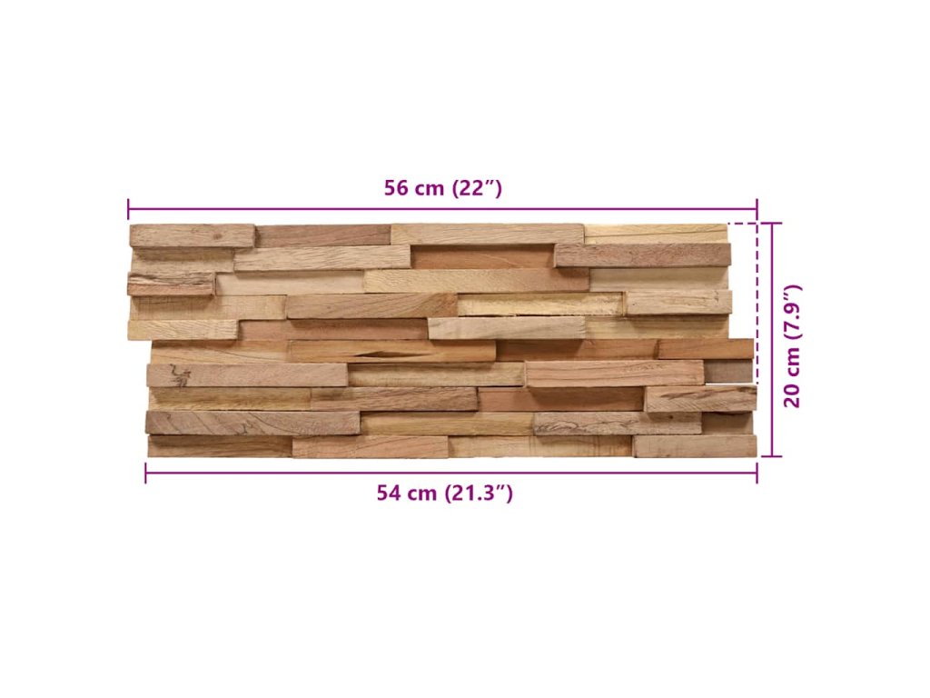 Tieto dekoratívne nástenné ozdobné panely so zvetraným, prírodným vzhľadom sú určené pre zvýraznenie každej miestnosti. Nástenné panely sú vyrobené z odolného, pevného tíkového dreva v prírodnom odtieni, čo zvýrazňuje ich rustikálny vzhľad pripomínajúci hromadu dosiek. Tieto krásne dekoratívne stenové panely sa veľmi ľahko inštalujú. Dodávka obsahuje 10 kusov, ktoré tvoria celkovú plochu 1,08 m².