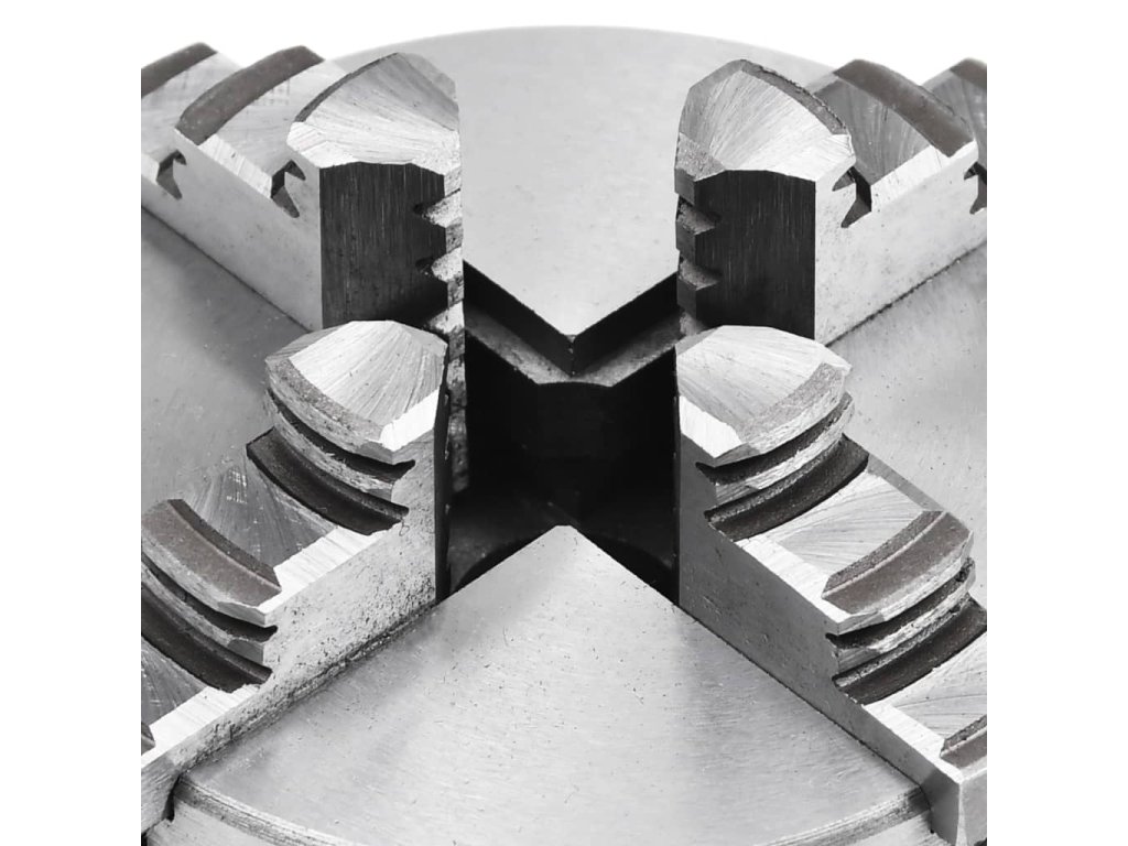 Toto samostrediace skľučovadlo na sústruh so 4 čeľusťami môže vykonávať širokú škálu úloh a rozširuje možnosti výroby originálnych návrhov. Vykazuje tiež vysokú presnosť upínania na širokej škále povrchov, ako je pevný rovný alebo vypuklý kruhový materiál, trojuholníkový materiál alebo šesťhranný materiál.