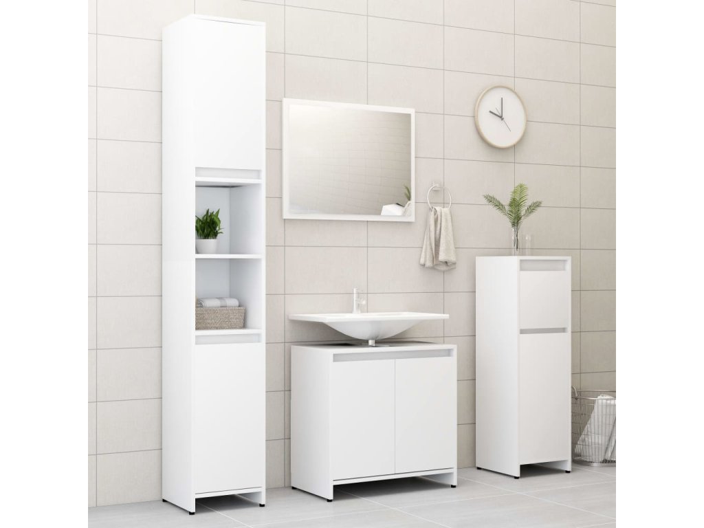 Táto štýlová súprava kúpeľňového nábytku pozostáva z 1 vysokej skrinky, 1 strednej skrinky, 1 skrinky pod umývadlo a 1 zrkadla. Má úhľadný a pôsobivý vzhľad a postará sa o to, aby ste v kúpeľni mali dostatok úložného priestoru.