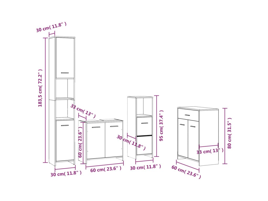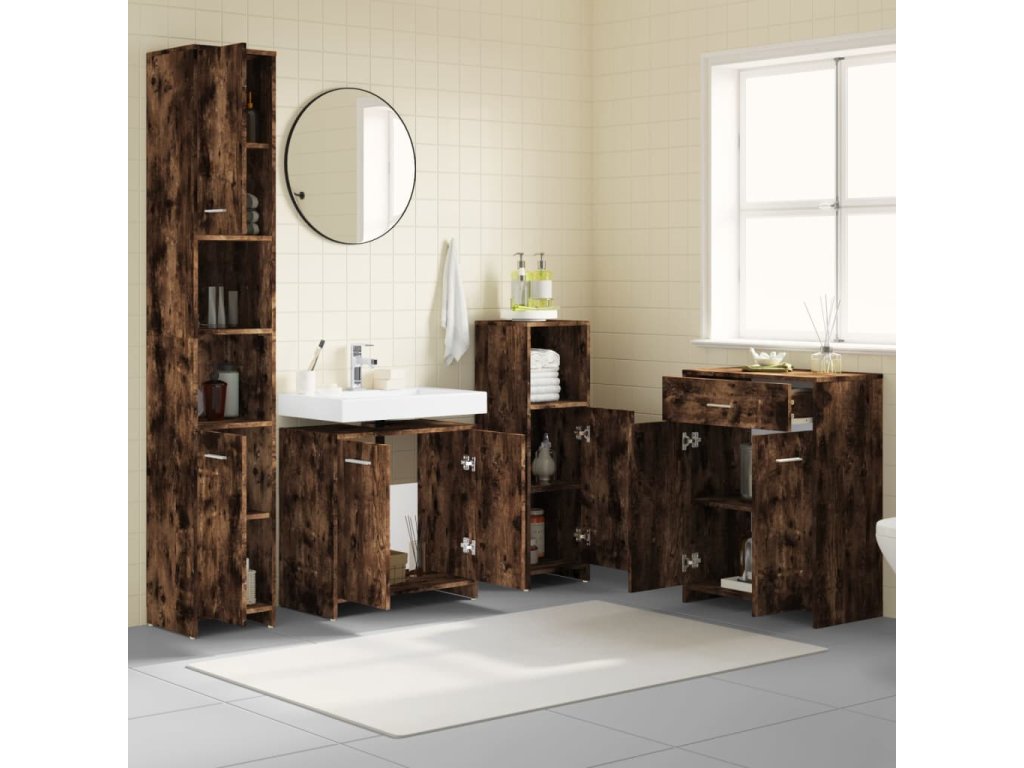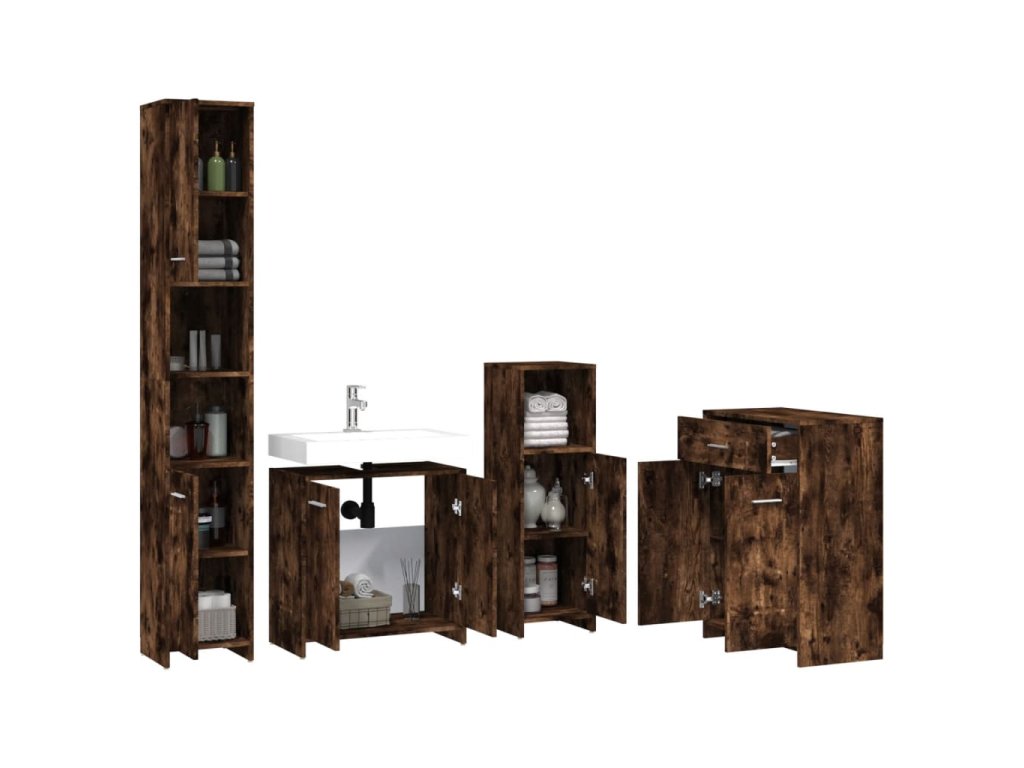 Táto 4-dielna súprava kúpeľňového nábytku s priestranným úložným priestorom bude elegantným a nadčasovým doplnkom každej kúpeľne alebo umyvárne.