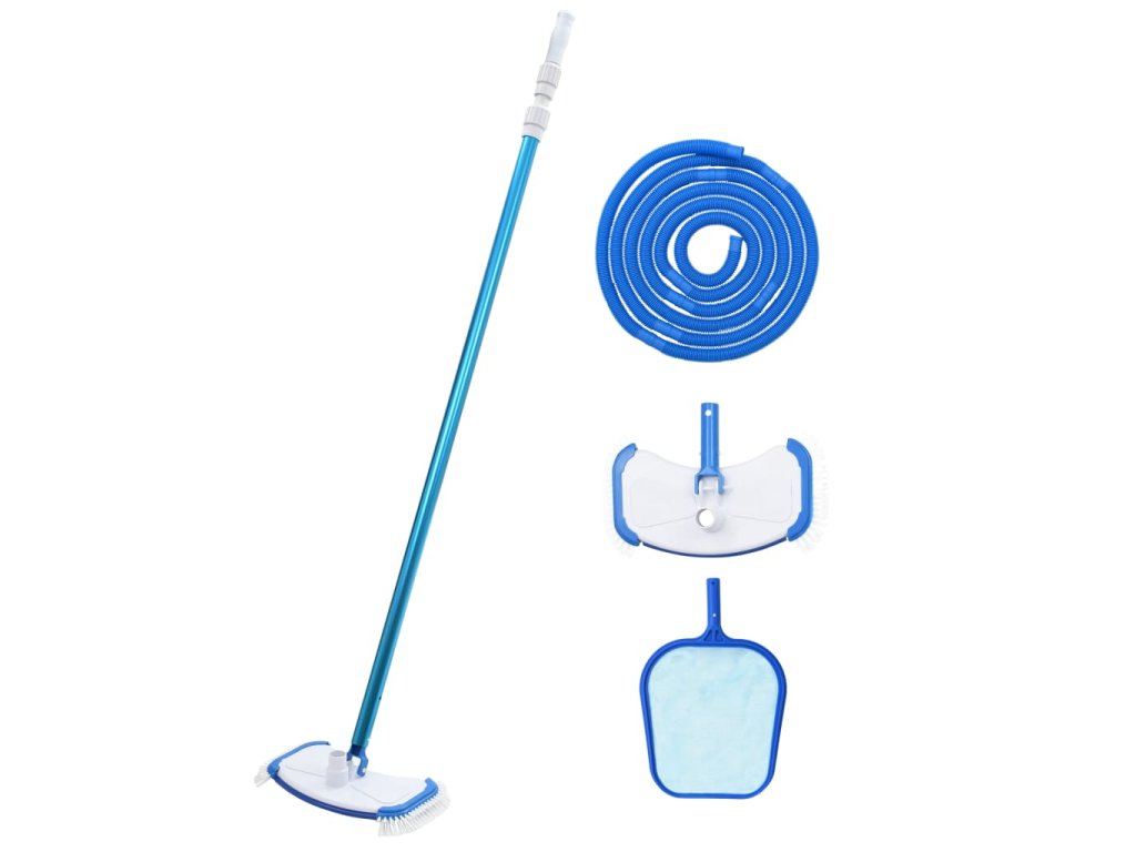Balenie obsahuje 1 vysávač, 1 skimmer, 1 hliníkovú tyč a 1 modrú hadicu.