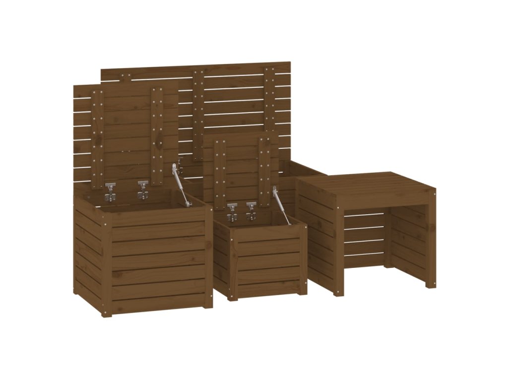 Táto sada drevených záhradných boxov poskytuje dostatok priestoru na uloženie náradia a iných pomôcok.