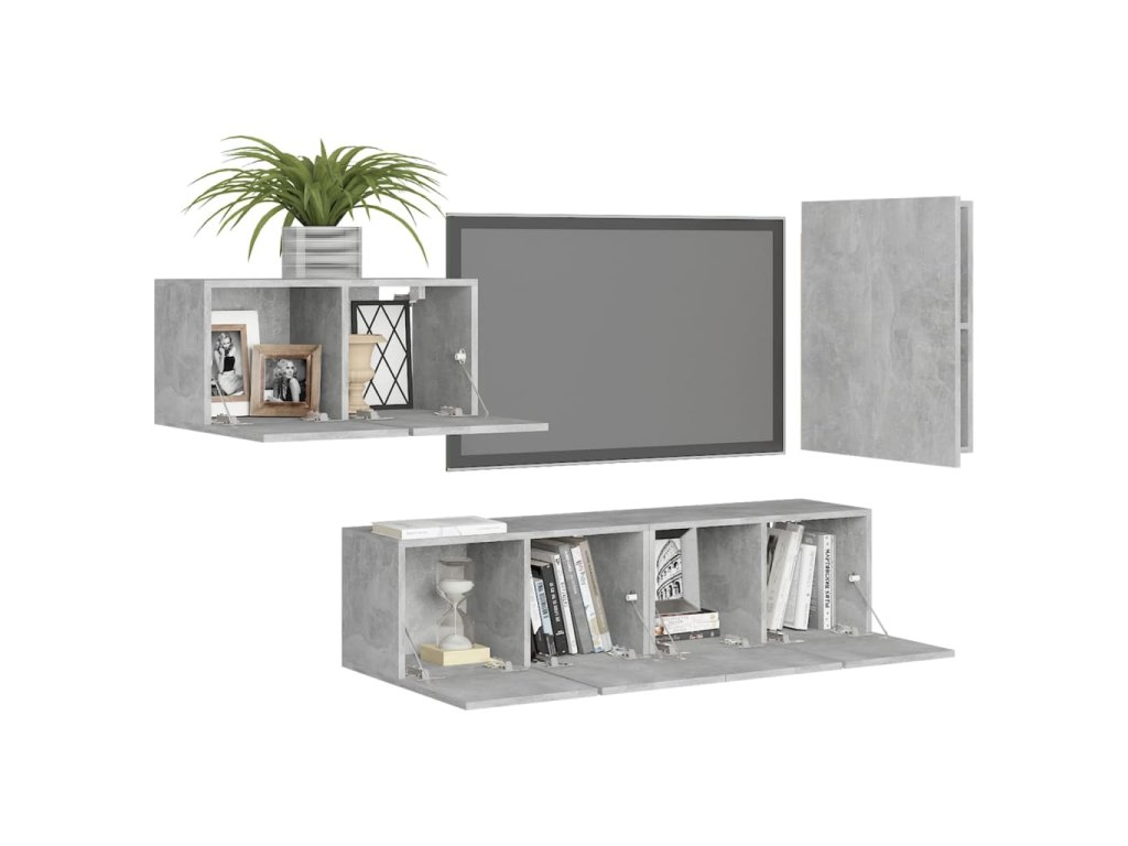 Táto sada závesných TV skriniek je vybavená veľkým úložným priestorom na uloženie rôznych predmetov a vo vašej domácnosti vytvorí praktický a pútavý doplnok.