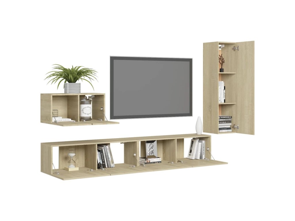 Táto sada závesných TV skriniek je vybavená veľkým úložným priestorom na uloženie rôznych predmetov a vo vašej domácnosti vytvorí praktický a pútavý doplnok.