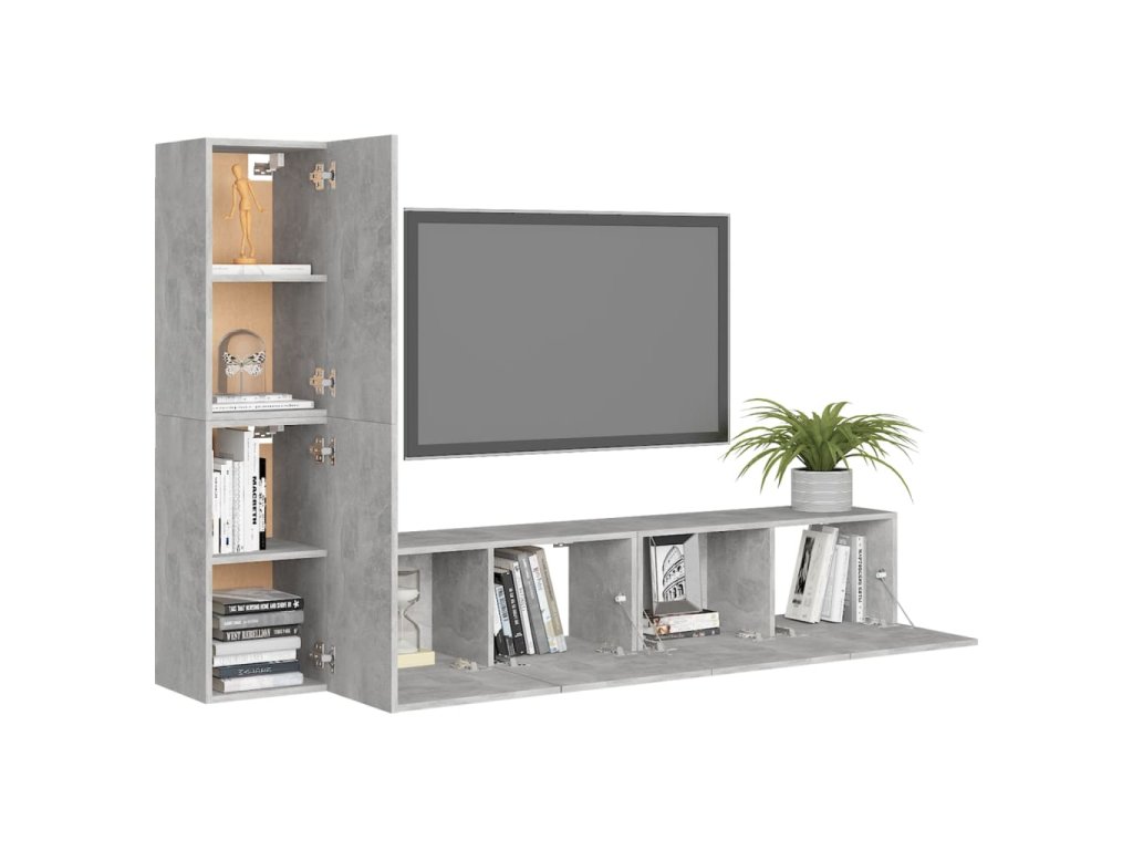 Táto sada závesných TV skriniek je vybavená veľkým úložným priestorom na uloženie rôznych predmetov a vo vašej domácnosti vytvorí praktický a pútavý doplnok.