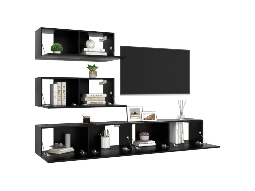 Táto sada závesných TV skriniek je vyrobená z upraveného dreva, vďaka čomu je pevná a odolná. Zostava skrinky je pripevnená na stenu, vďaka čomu bude nadčasovým doplnkom vášho domova. Súprava obsahuje niekoľko priehradiek, vďaka ktorým je ideálnym miestom na uloženie všetkých vašich časopisov, DVD alebo iných predmetov. Táto HiFi skrinka sa dá ľahko očistiť navlhčenou handričkou.