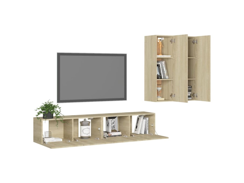 Táto sada závesných TV skriniek je vybavená veľkým úložným priestorom na uloženie rôznych predmetov a vo vašej domácnosti vytvorí praktický a pútavý doplnok.