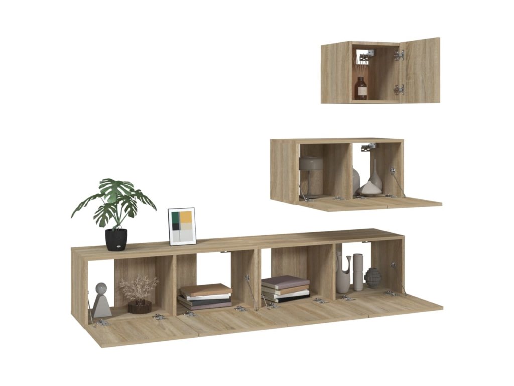 Táto súprava TV skriniek s úhľadným a moderným dizajnom predstavuje nielen ozdobný, ale aj praktický doplnok do interiéru.