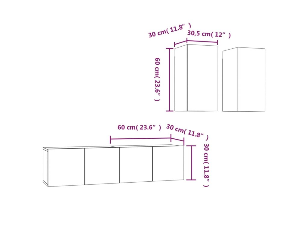 - Rozmery TV skrinky (s 2 dvierkami): 60 x 30 x 30 cm (Š x H x V)