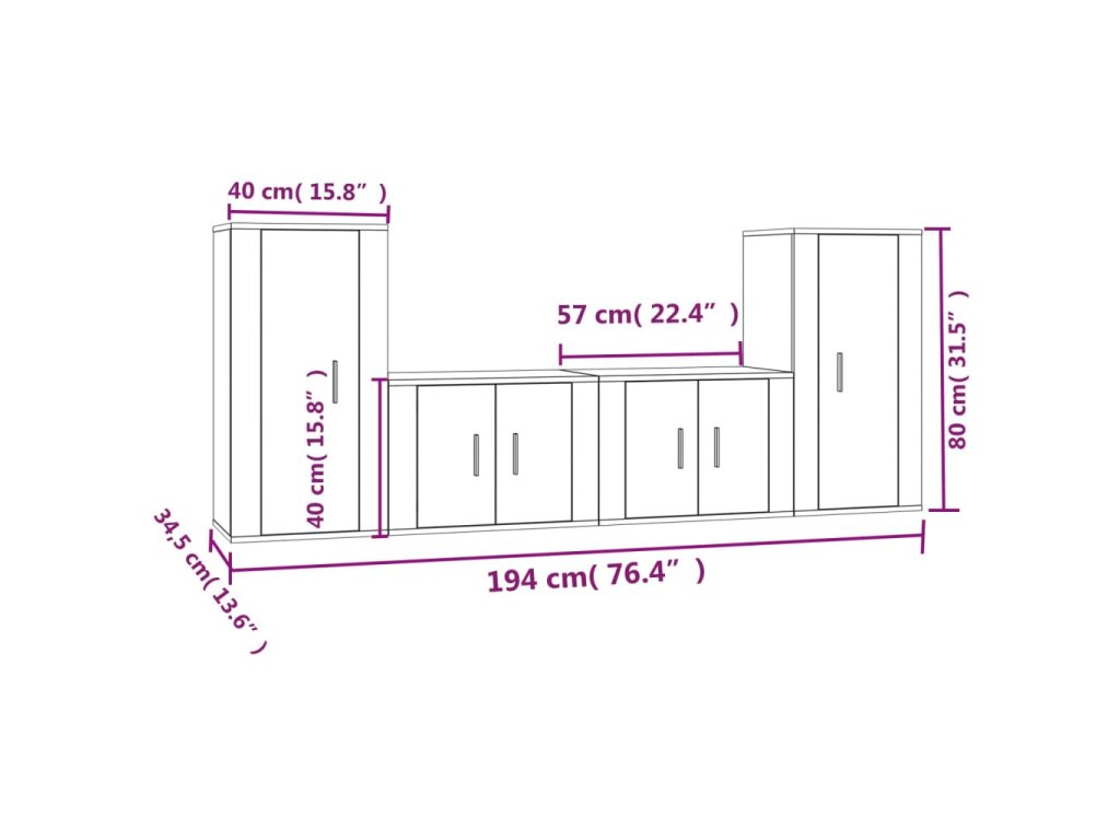 - 2 x TV skrinka: 40 x 34,5 x 80 cm (D x Š x V)