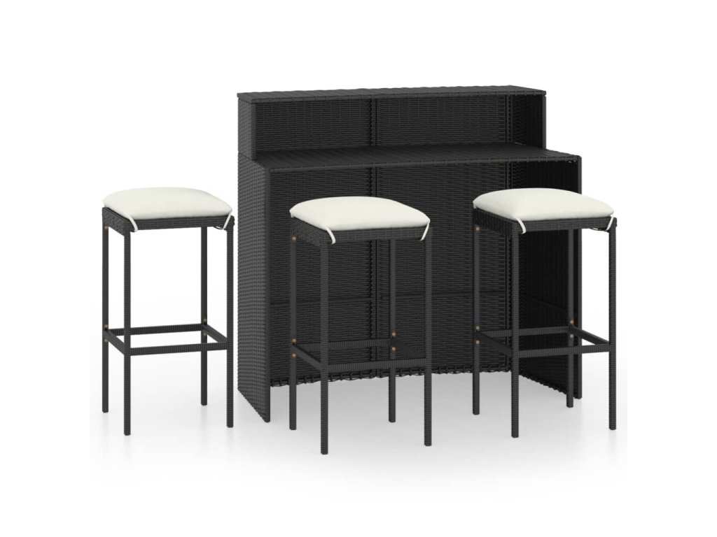 Barová súprava je vyrobená z PE ratanu, ktorý je vodovzdorný a odolný voči poveternostným vplyvom. Dá sa ľahko očistiť, je trvácna a vhodná aj na každodenné používanie. Oceľový rám s práškovou povrchovou úpravou dodáva všetkým položkám potrebnú stabilitu a odolnosť. Vďaka ľahkej konštrukcii sa dajú bez námahy presúvať. Hrubé, odnímateľné podložky na sedadlo poskytujú optimálne pohodlie. Podložky na sedadlo majú poťahy na zips, ktoré môžete jednoducho zvliecť a oprať.