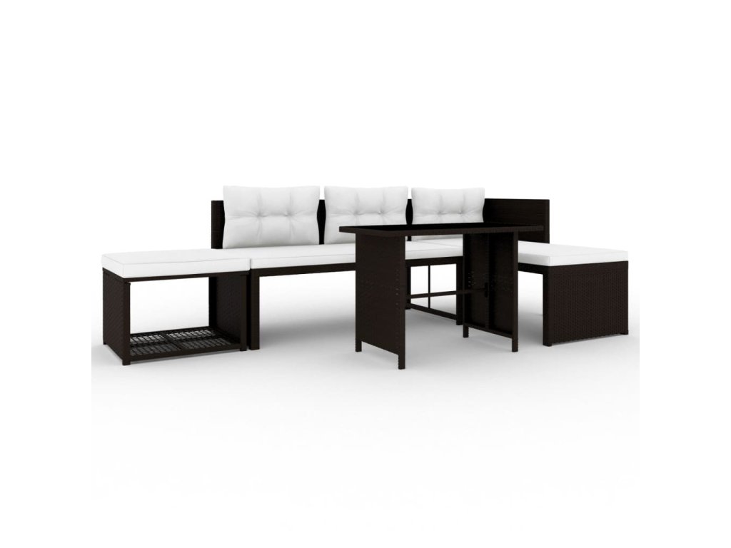 Súprava pohoviek je vyrobená z vodovzdorného PE ratanu, a tak sa dá ľahko očistiť a je trvácna. Súprava nábytku má oceľový rám s práškovou povrchovou úpravou, vďaka čomu je skutočne pevná a stabilná. Dodáva sa spolu s pohodlnými, nahusto vyčalúnenými podložkami a vankúšmi, ktoré poskytujú optimálny komfort pri sedení. Poťahy podložiek z polyesteru si nevyžadujú náročnú údržbu a stačí ich len zvliecť a oprať. V balení sa nachádza 1 stôl, 1 podnožka, 1 dvojmiestna pohovka, 1 ležadlo, 3 podložky na sedadlo a 3 vankúše na operadlo.