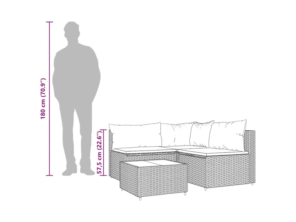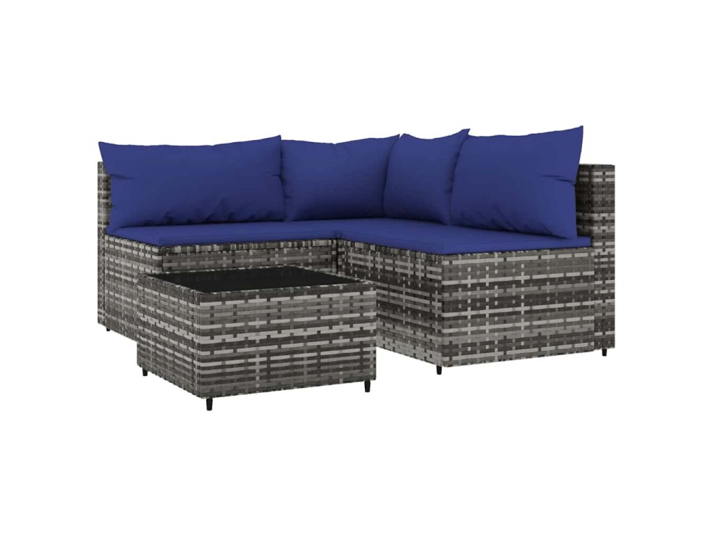 - Materiál: PE ratan, oceľ s práškovým nástrekom, látka (100% polyester), tvrdené sklo