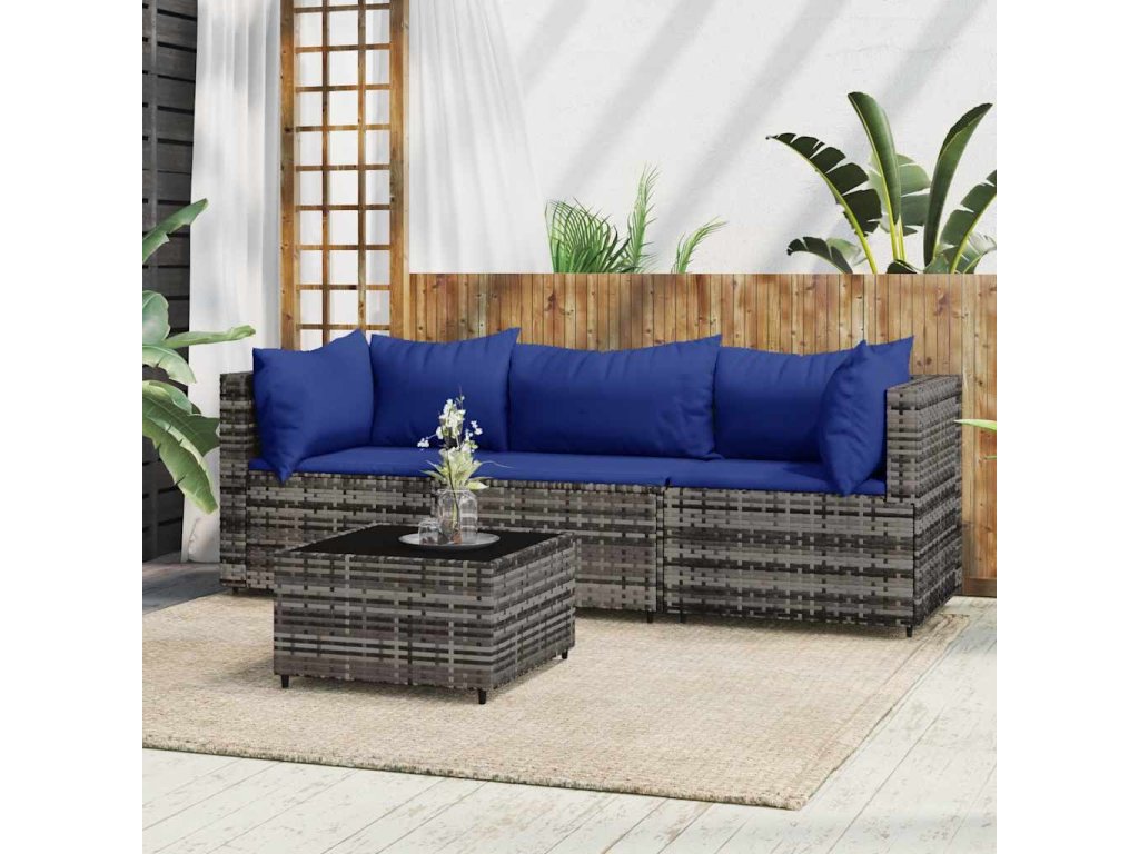 - Materiál: PE ratan, oceľ s práškovým nástrekom, látka (100% polyester), tvrdené sklo