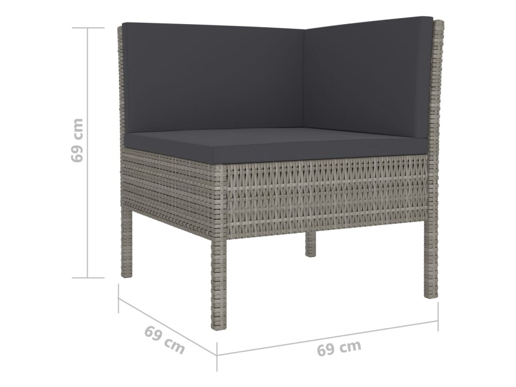 - Rozmery rohovej pohovky: 69 x 69 x 69 cm (Š x H x V)