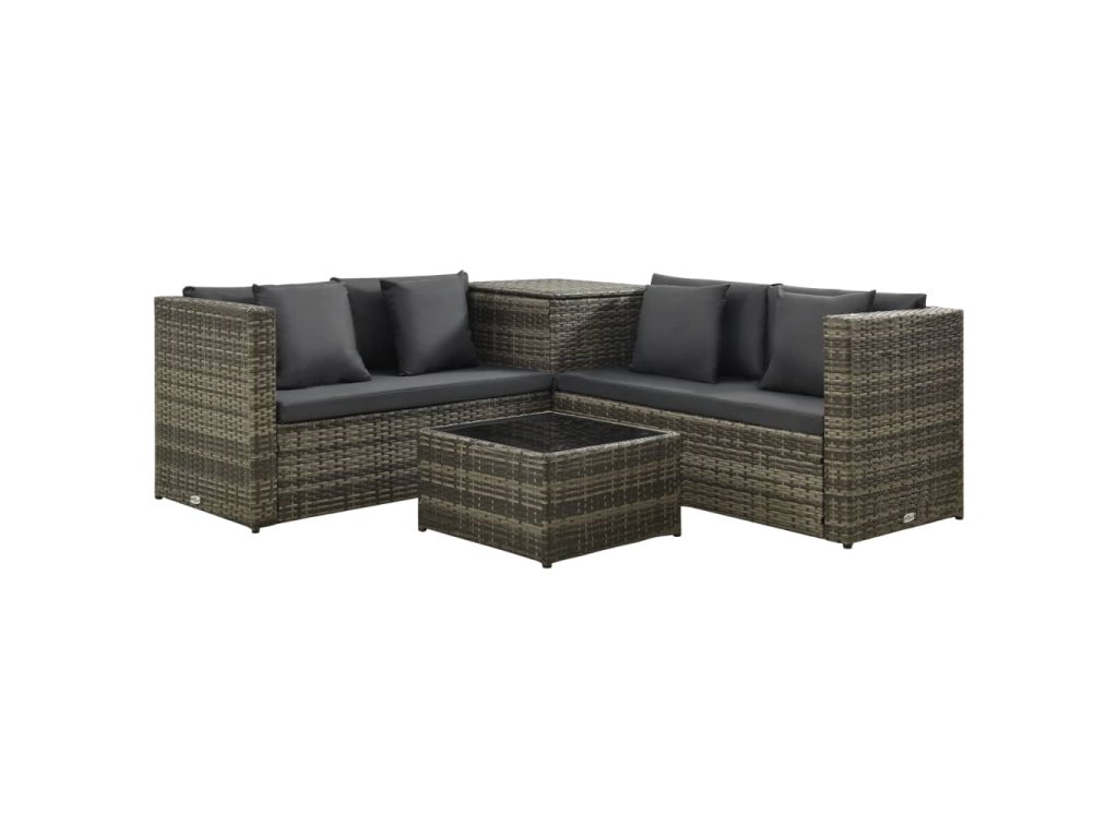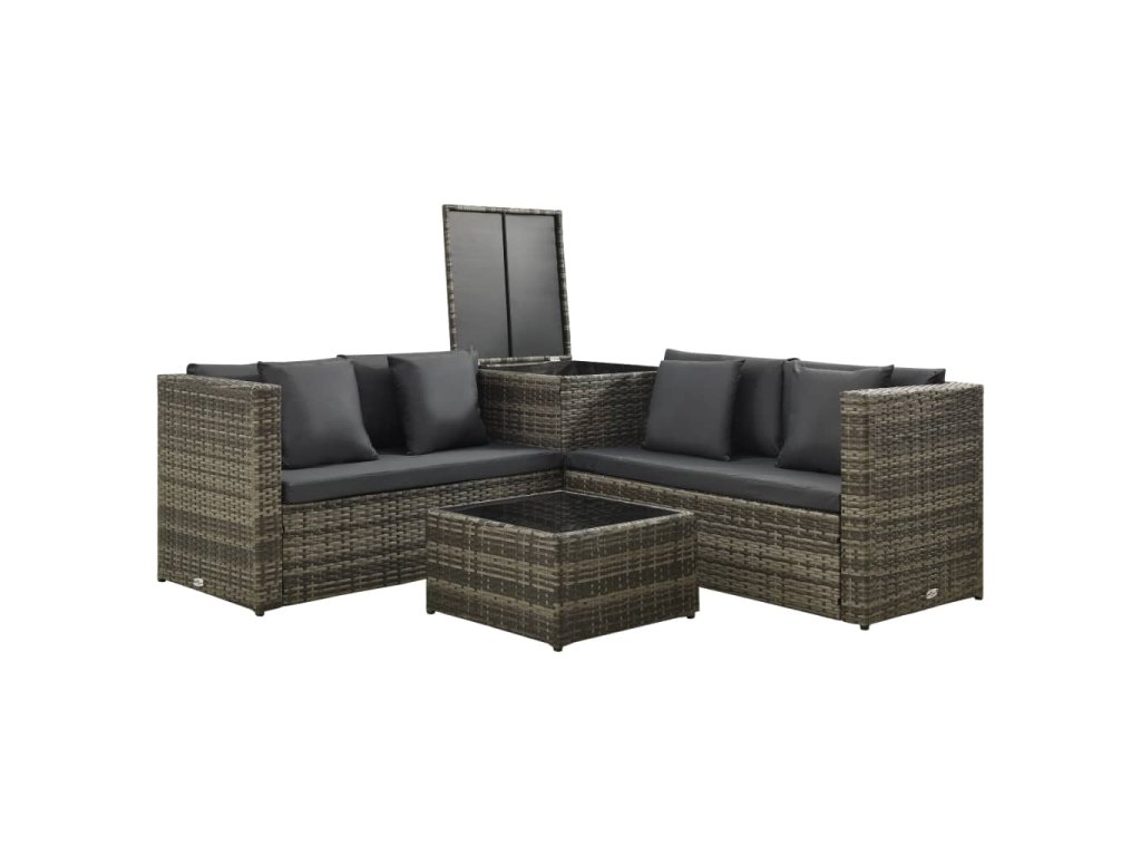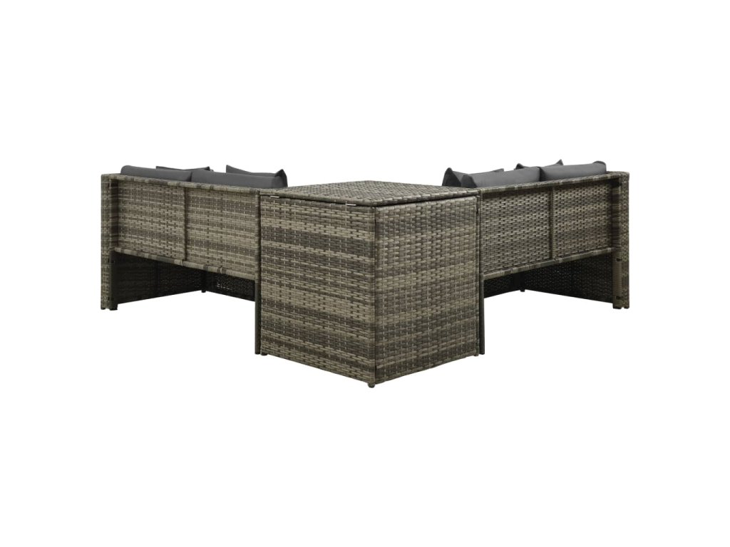 Sedacia súprava z polyratanu je určená na celoročné používanie v exteriéri. Vďaka polyratanu, ktorý je odolný voči poveternostným vplyvom a vode, sa sedacia súprava dá ľahko očistiť, je odolná a vhodná na každodenné používanie v exteriéri. Súprava má pevný oceľový rám s práškovou povrchovou úpravou, ktorý je mimoriadne trvácny. Okrem toho je ľahký, a tak sa vonkajšia sedacia súprava dá jednoducho premiestniť. Úložná truhlica poskytuje ideálne miesto na prehľadné odkladanie diek, vankúšov, kníh a iných potrieb. Hrubé odnímateľné podložky a vankúše sú veľmi pohodlné. Polyesterové poťahy s neviditeľnými zipsami sa ľahko čistia a môžete ich v prípade potreby zvliecť a oprať. Na sklenenú stolovú dosku si môžete položiť nápoje, jedlá či rôzne dekorácie. Táto modulárna polyratanová sedacia súprava je veľmi flexibilná a dá sa bez námahy premiestniť a prispôsobiť okolitému prostrediu!