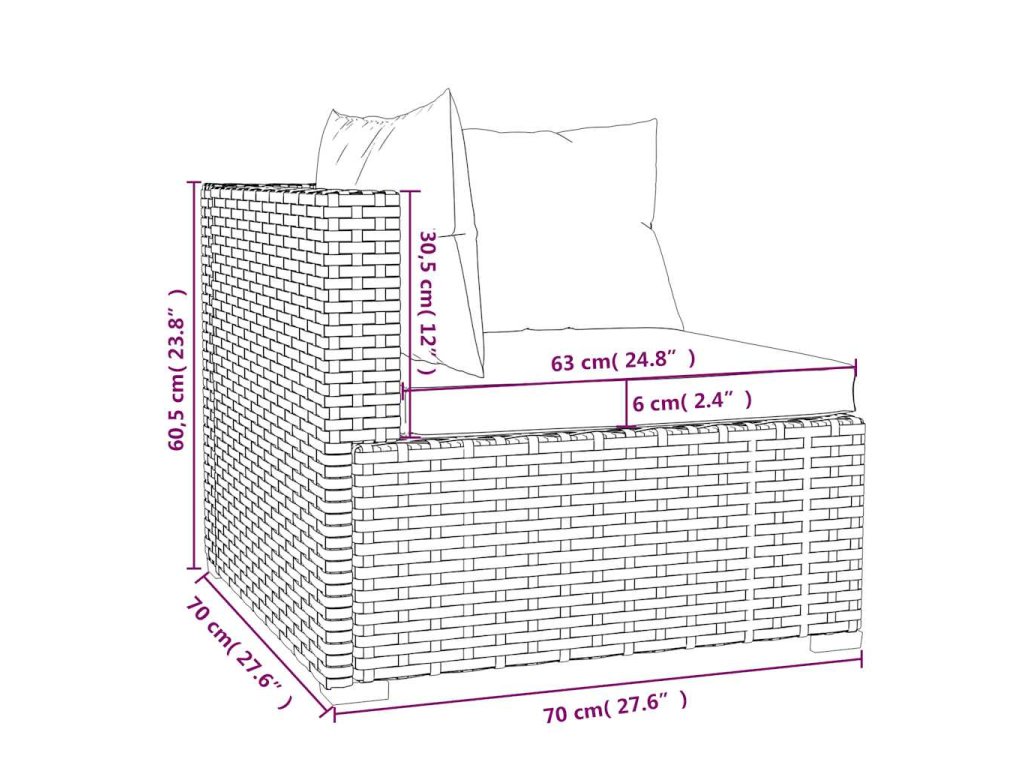 - Rozmery strednej/rohovej pohovky (každá): 70 x 70 x 60,5 cm (D x Š x V)