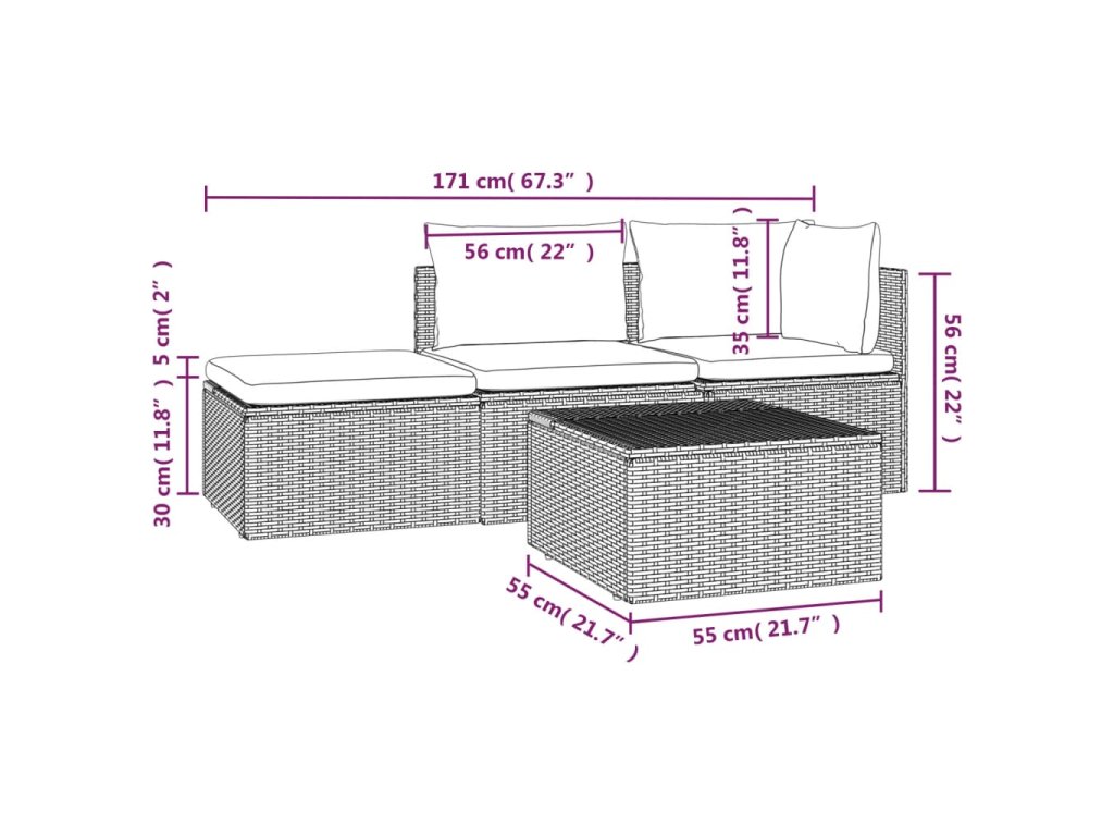 - Materiál: PE ratan, oceľ s práškovým nástrekom, polyester, PVC (polyvinylchlorid)