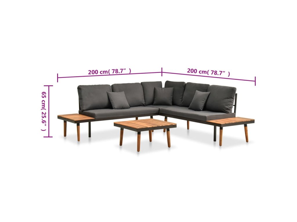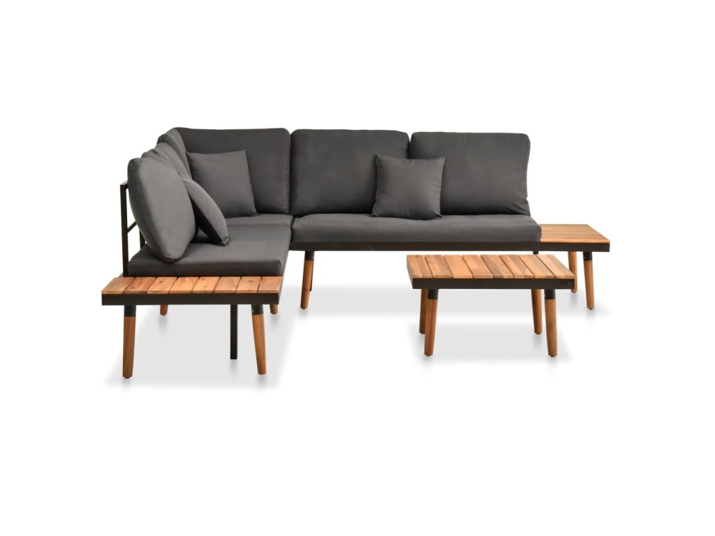 Naša odolná súprava záhradného nábytku sa jednoducho čistí a je vyrobená z akáciového masívu. Ide o drevo tropického listnatého stromu, ktoré je odolné voči poveternostným vplyvom a naozaj trvácne, takže vám vydrží dlhé roky. Vďaka pevnému oceľovému rámu je táto súprava veľmi stabilná a trvácna. Na menšie drevené časti si môžete položiť občerstvenie, nápoje, čajové šálky, knihy alebo iné drobnosti. Súprava sa dodáva s veľmi pohodlnými, nahusto vyčalunenými podložkami a vankúšmi. Poťahy z polyesteru si nevyžadujú náročnú údržbu a dajú sa zvliecť a oprať.