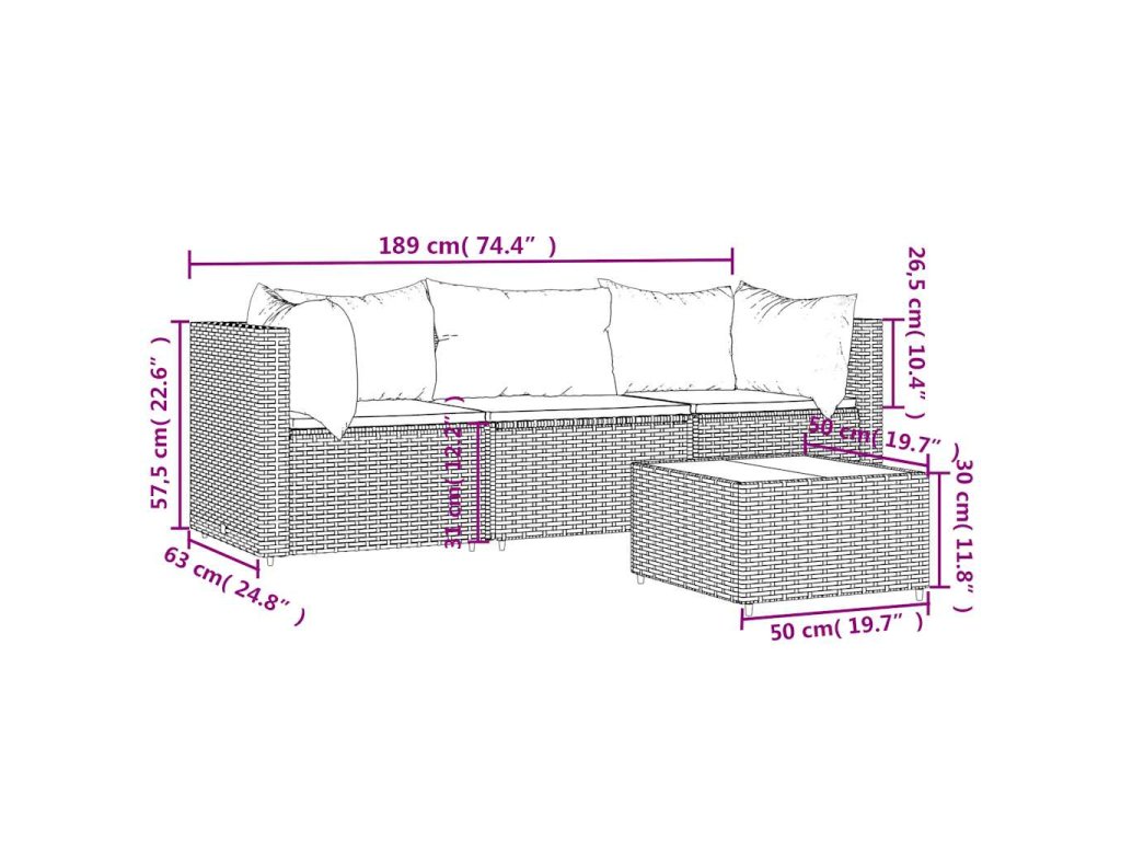 - Materiál: PE ratan, oceľ s práškovým nástrekom, látka (100% polyester), tvrdené sklo