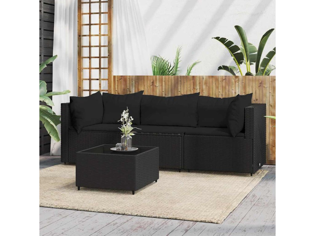 - Materiál: PE ratan, oceľ s práškovým nástrekom, látka (100% polyester), tvrdené sklo