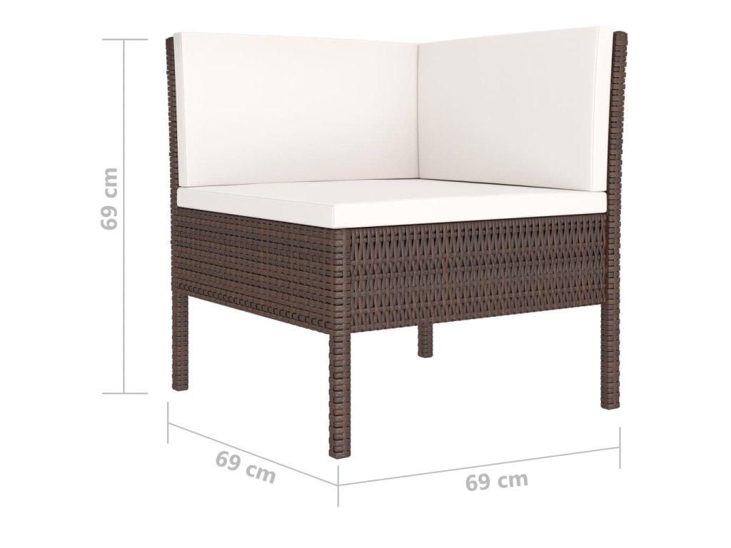 - Rozmery rohovej pohovky: 69 x 69 x 69 cm (Š x H x V)