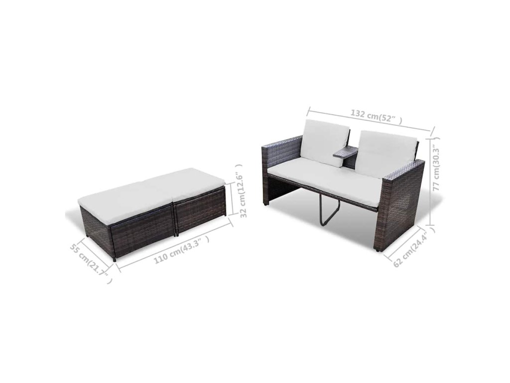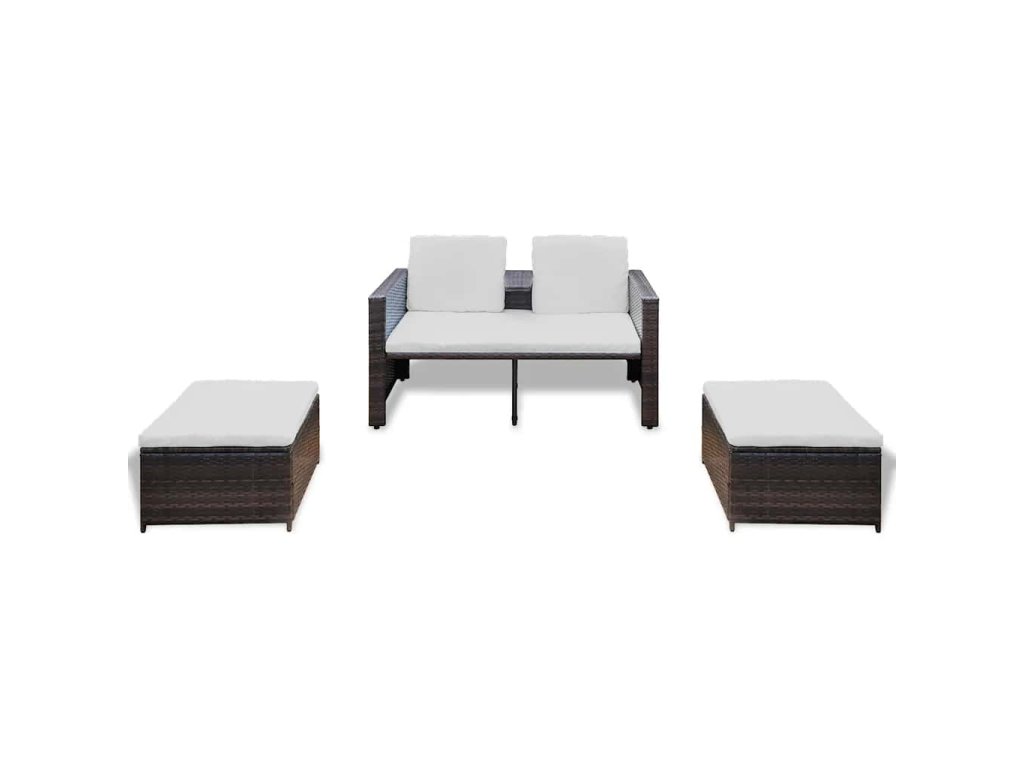 Táto vonkajšia ratanová sedacia súprava obsahuje 2-miestne kreslo a 2 podnožky. Je esteticky a ergonomicky navrhnutá tak, aby vo vašej záhrade vytvorila pútavý prvok.