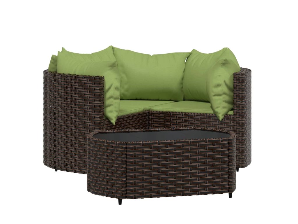 - Materiál: PE ratan, oceľ s práškovým nástrekom, látka (100% polyester), tvrdené sklo