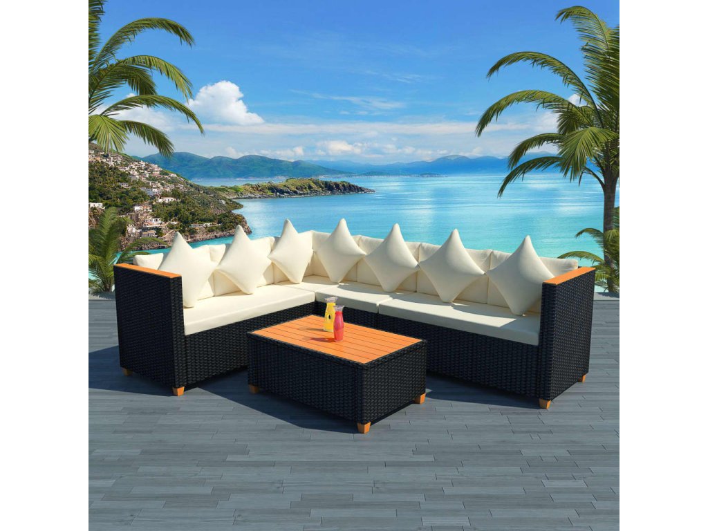 Balenie obsahuje dve 2-miestne časti sedačky (každá s jednou lakťovou opierkou), jednu rohovú časť sedačky, jeden konferenčný stolík, sedem vankúšov, sedem vankúšov za chrbát a tri sedáky. Poznámka: Odporúčame nábytok zakrývať v prípade dažďa, snehu a mrazov.