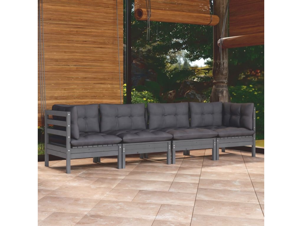 Terasová sedacia súprava je vyrobená z masívneho borovicového dreva, vďaka čomu je robustná a stabilná. Vankúše jej dodávajú dodatočné pohodlie. Môžete ju skombinovať s inými modulárnymi segmentmi a vytvoriť si tak svoje vlastné konfigurácie záhradného posedenia!