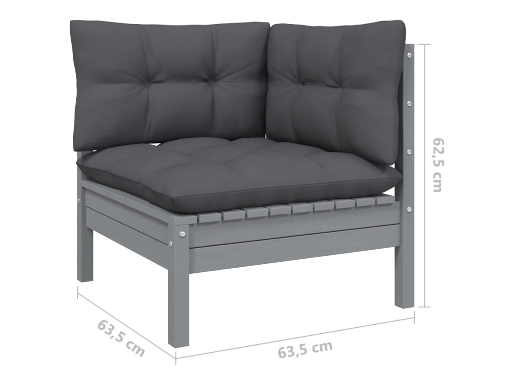 Terasová sedacia súprava je vyrobená z masívneho borovicového dreva, vďaka čomu je robustná a stabilná. Vankúše jej dodávajú dodatočné pohodlie. Môžete ju skombinovať s inými modulárnymi segmentmi a vytvoriť si tak svoje vlastné konfigurácie záhradného posedenia!