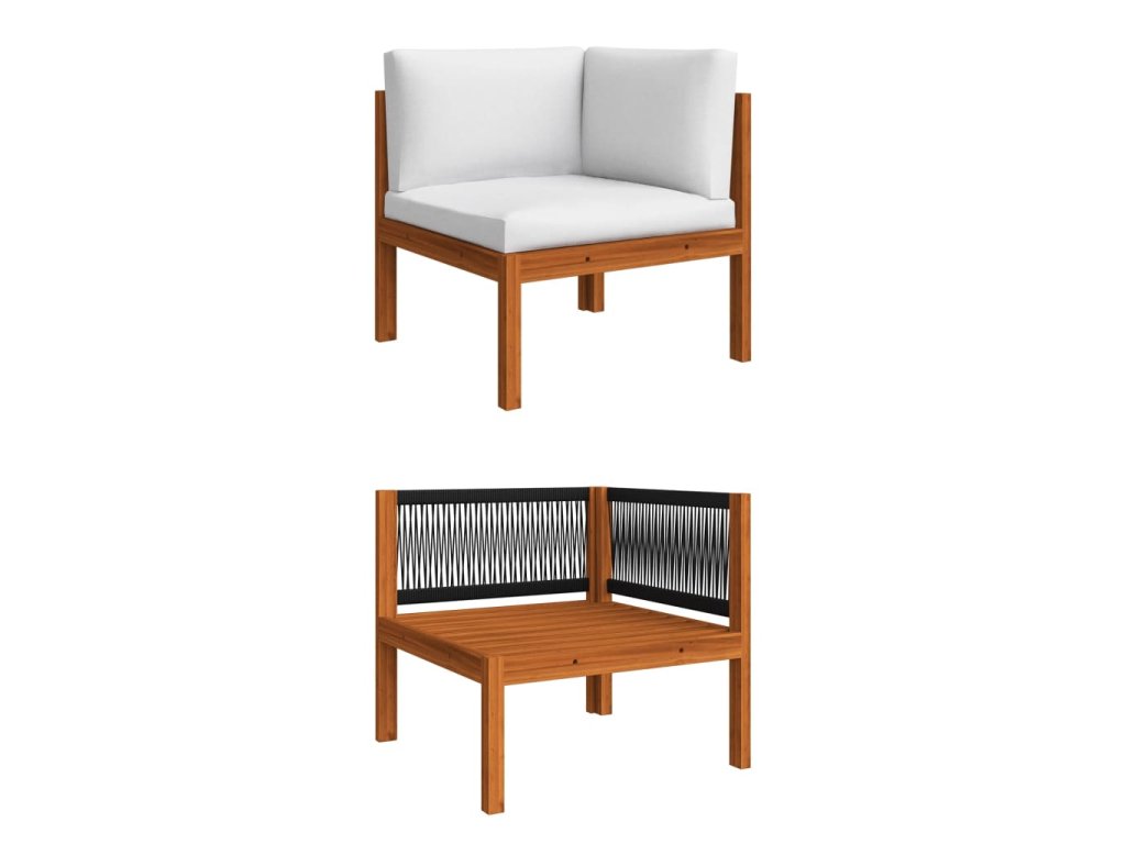 Záhradná pohovka sa vyznačuje prepracovanými lanovými operadlami, ktoré dodávajú sofistikovaný nádych každému vonkajšiemu priestoru. Táto záhradná súprava je vyrobená z vysoko kvalitného masívneho akáciového dreva, tropického tvrdého dreva, ktoré je odolné voči poveternostným vplyvom a veľmi trvácne. Vďaka olejovej úprave má súprava záhradného nábytku teplú farbu a ľahko sa čistí a udržiava. Okrem toho balenie obsahuje vankúše na sedadlo a operadlo s hrubým polstrovaním pre maximálne pohodlie pri sedení.