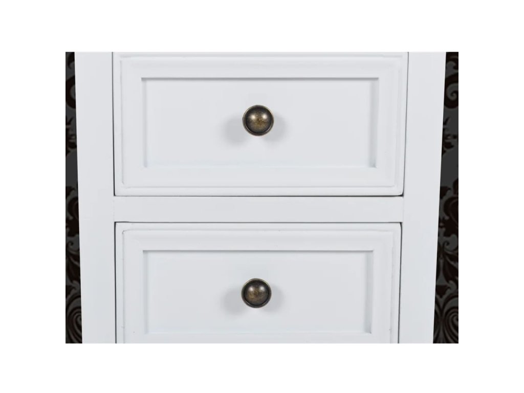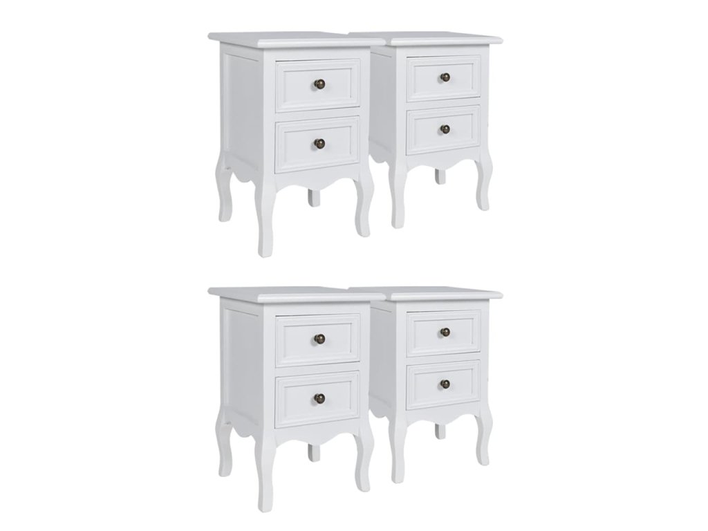 Balenie obsahuje štyri nočné stolíky. Upozornenie: Keďže je tento nábytok je vyrobený z dreva a je natretý bielou farbou a je tiež ručne vyrobený, môže sa ňom vyskytnúť drobné nedostatky.