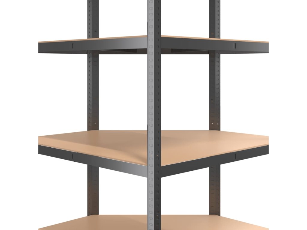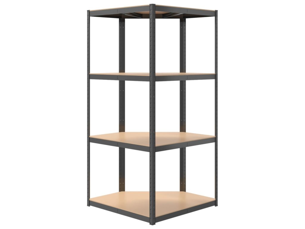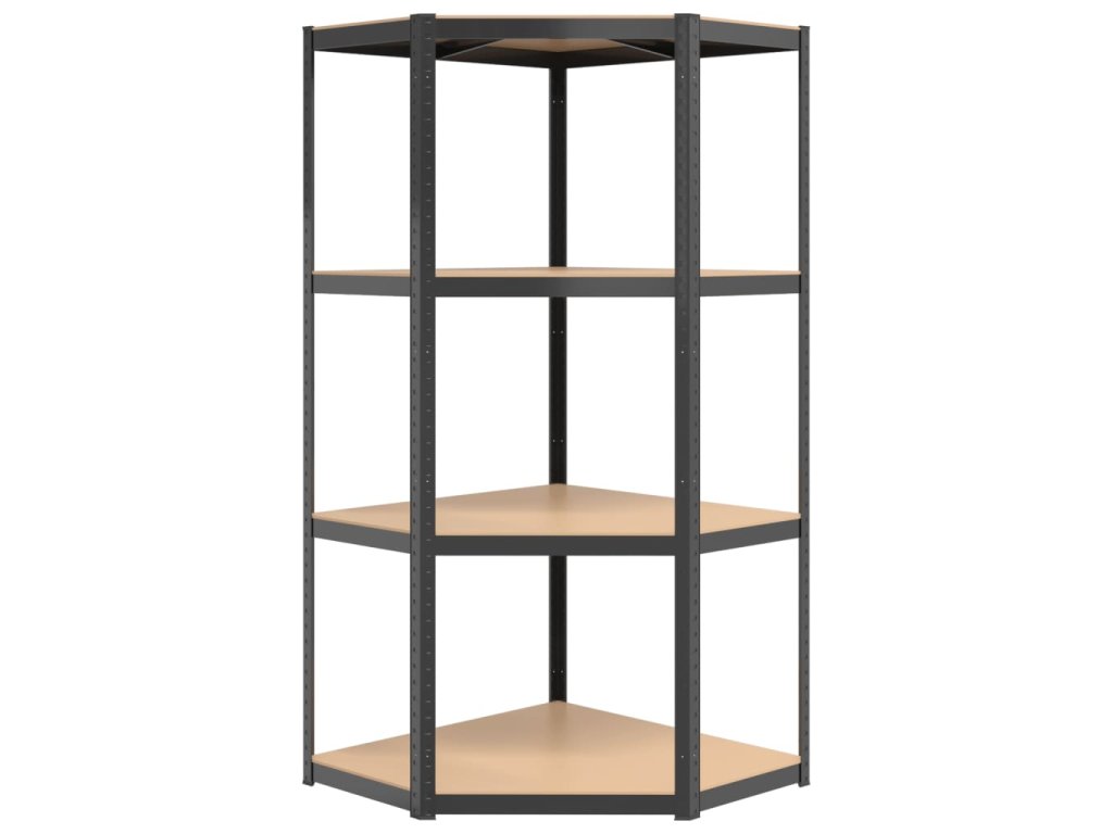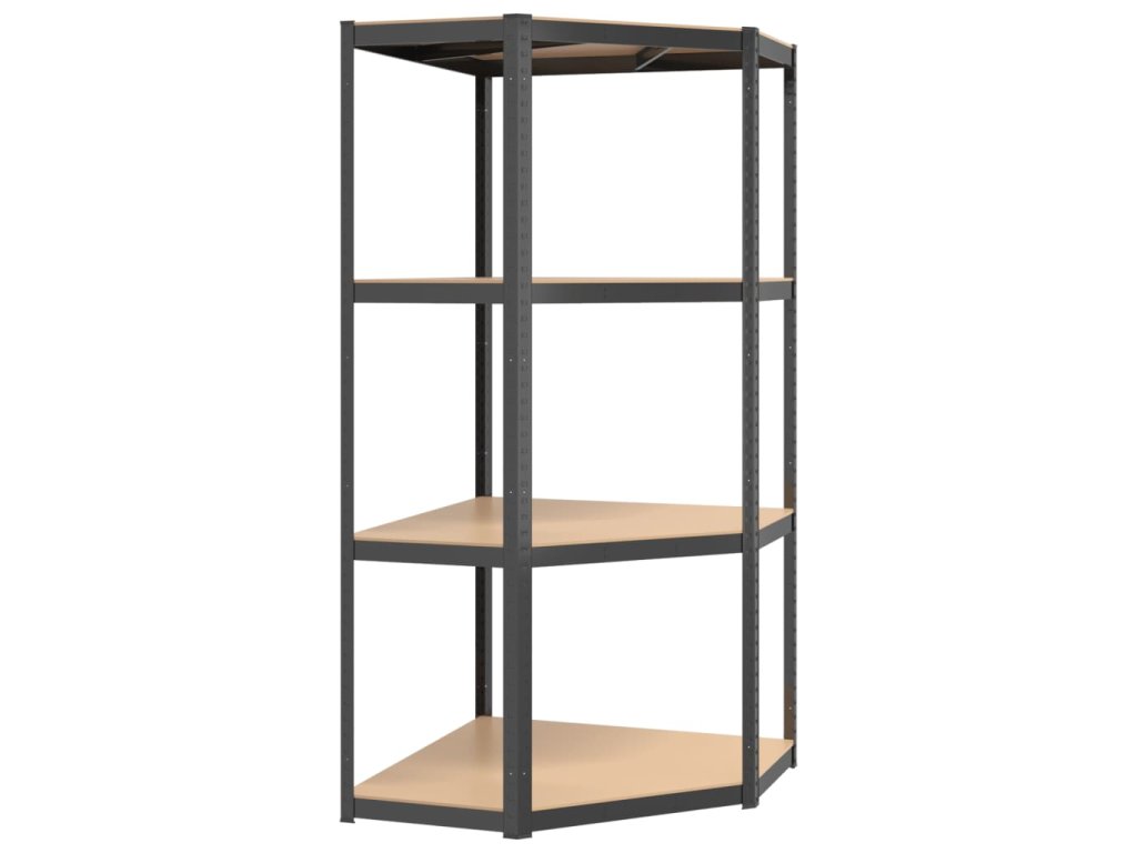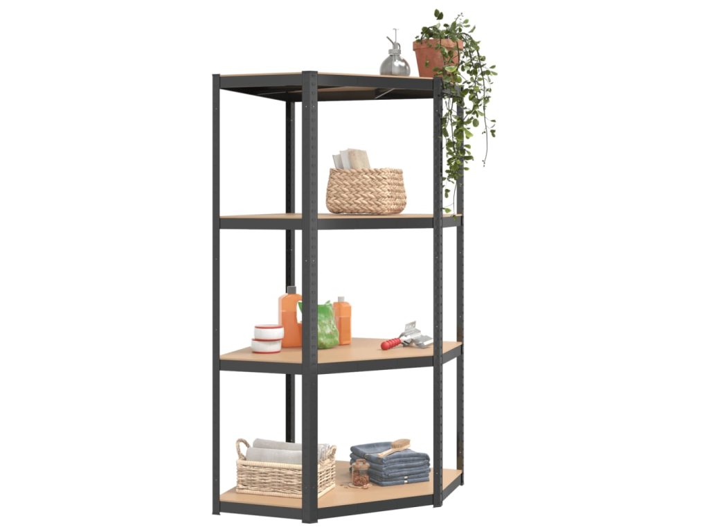 Tento rohový regál je vhodný do domácností aj komerčných priestorov a poskytuje množstvo miesta na prehľadné odkladanie rôznych predmetov.