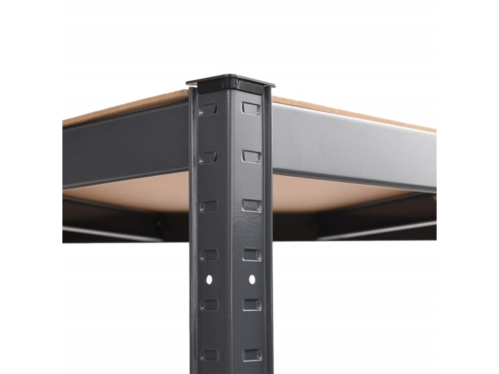 - Pevný materiál: Úložný regál pozostáva z oceľového rámu a dosiek zo spracovaného dreva. Oceľové rámy zaručujú pevnosť a stabilitu, zatiaľ čo umelé drevo ponúka pevnosť, stabilitu a odolnosť proti vlhkosti.