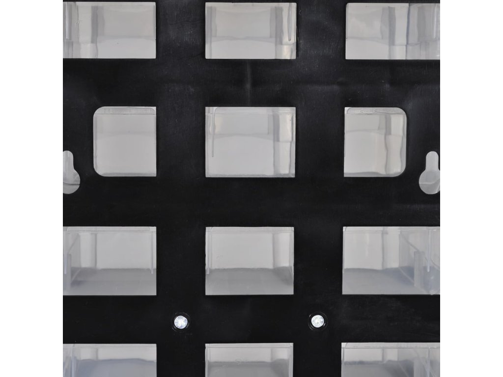 Skrinka ke ideálna na uloženie všetkých druhov drobností, ako sú napríklad malé súčiastky náradia, príslušenstvo alebo vaše remeselné práce. Podľa veľkosti veci, ktorú chcete do nej vložiť si môžete vybrať buď veľkú zásuvku alebo tie malé. Odolný priehľadný plast zabezpečuje viditeľnosť predmetov uložených v zásuvke. Na zadnej strane boxu sú 2 malé otvory, aby ste ho mohli pripevniť k stene alebo inému povrchu.