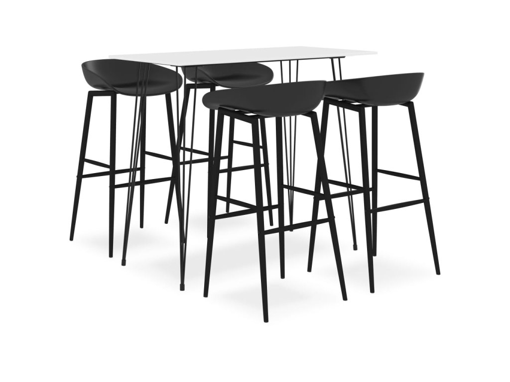 Stolová doska je vyrobená z MDF, ktorá sa ľahko čistí. Kovový rám s práškovou povrchovou úpravou zvyšuje stabilitu a pevnosť barového stola. Barové stoličky majú ergonomicky tvarované sedadlo so vstavaným nízkym operadlom. Tieto barové stoličky sú vyrobené zo silného PP a podopierajú ich pevné kovové nohy s práškovou povrchovou úpravou, vďaka čomu sú odolné a trvácne.