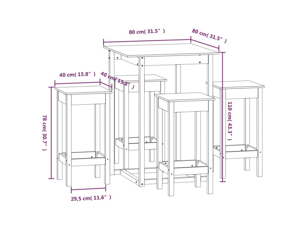 - Rozmery barového stola: 80 x 80 x 110 cm (D x Š x V)