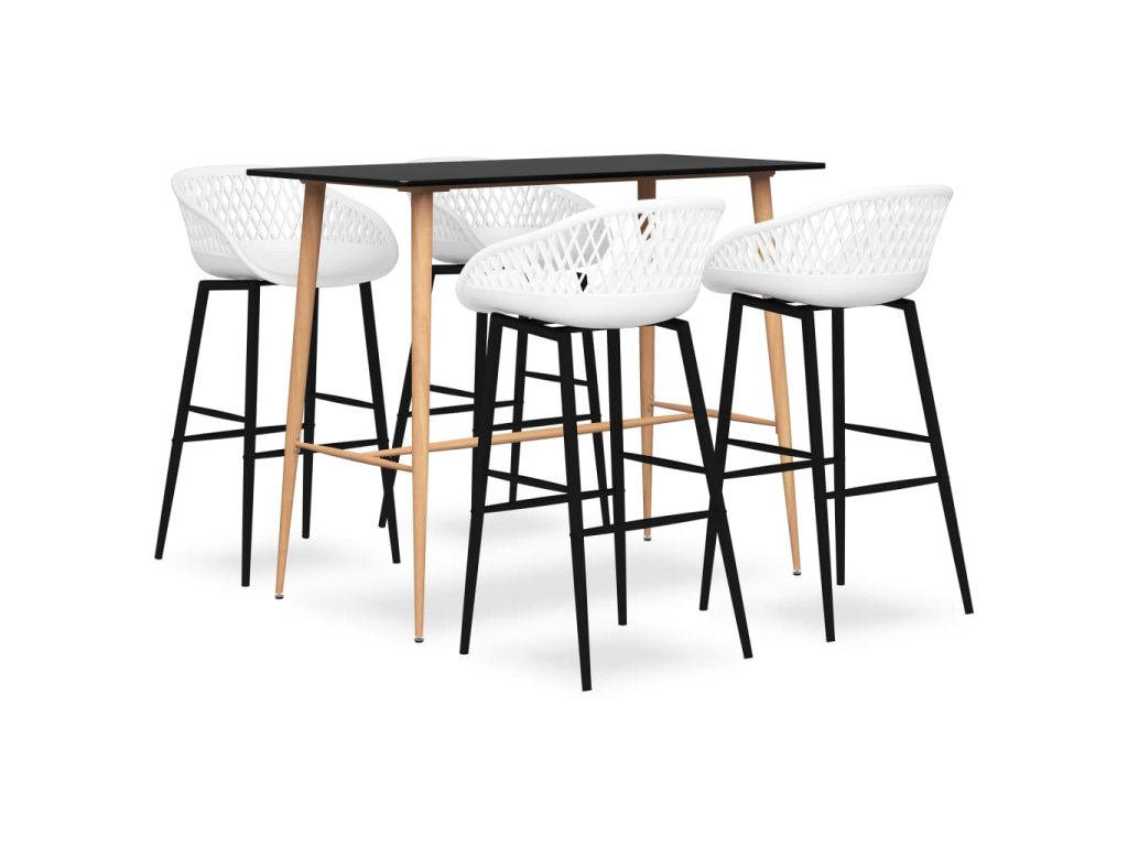 Stôl obsahuje trvácnu dosku z MDF a pevné kovové nohy s dreveným vzhľadom. Tieto barové stoličky majú ergonomicky tvarované sedadlo s integrovaným nízkym operadlom so sieťovinovým vzhľadom. Stoličky k baru sú vyrobené z pevného PP a stoja na pevných práškovaných kovových nohách, vďaka čomu sú naozaj stabilné a trvácne.