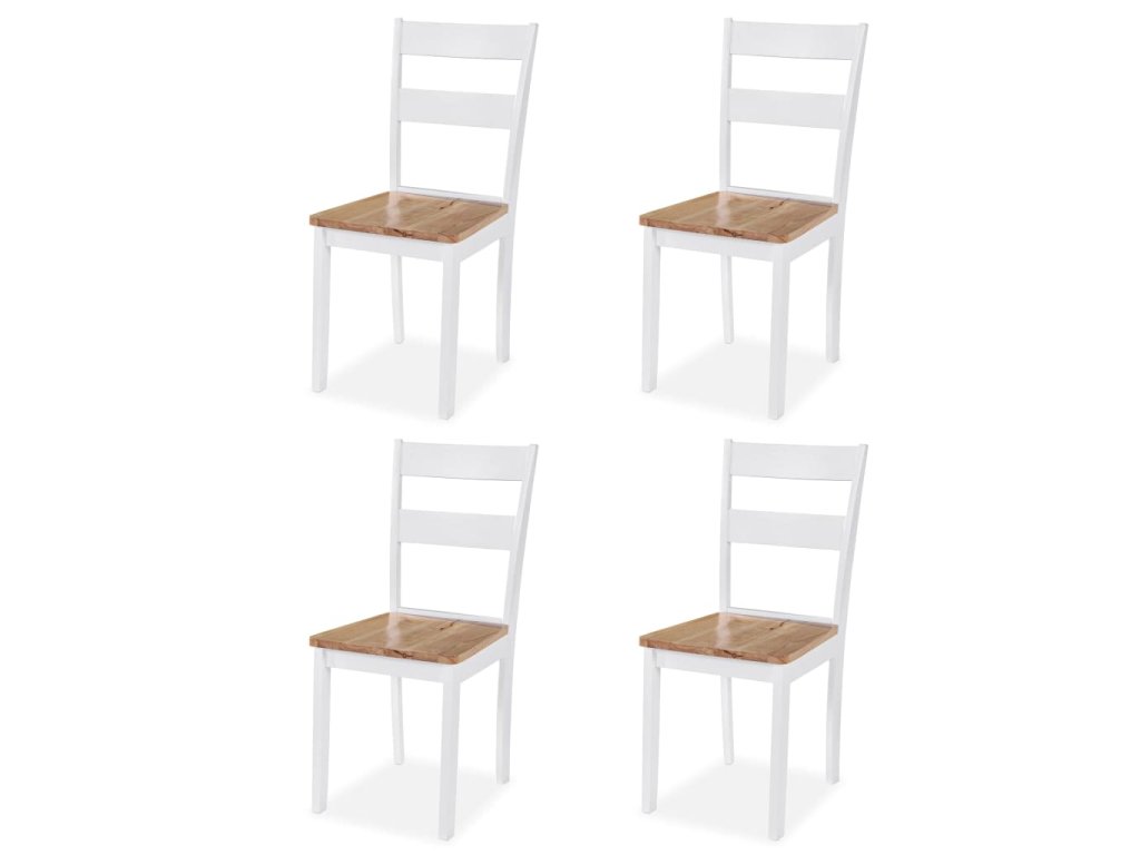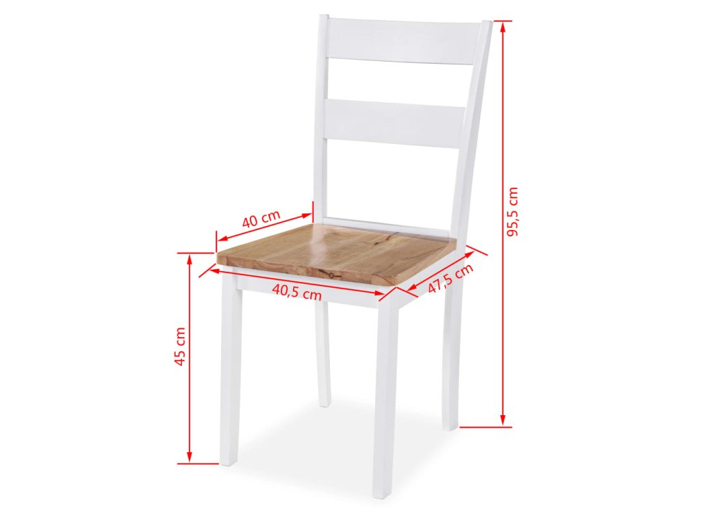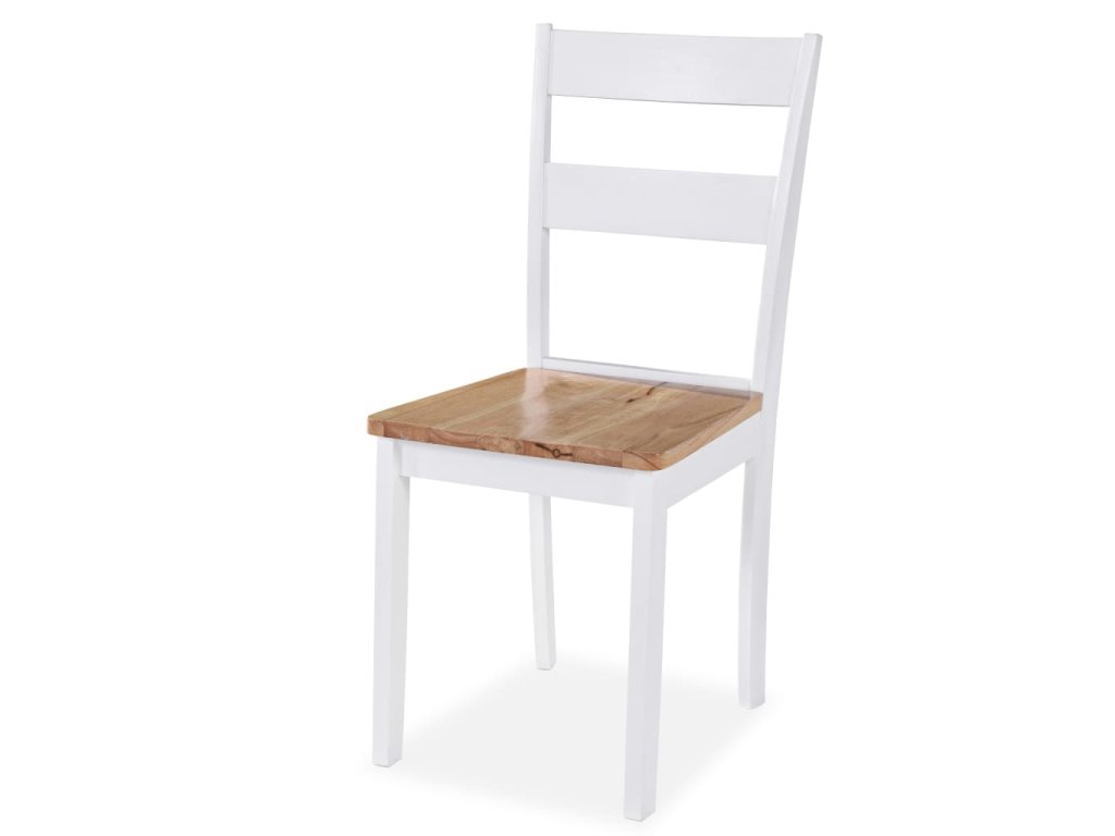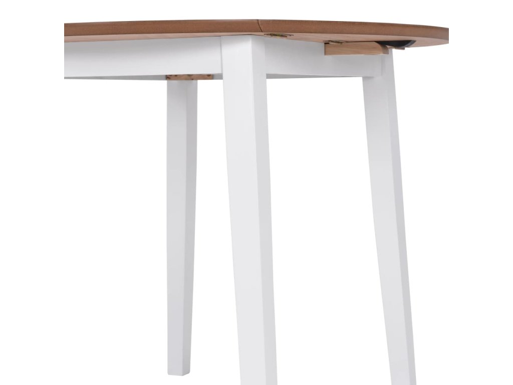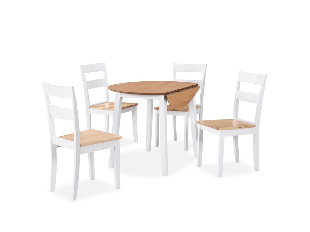 Táto súprava má klasický dizajn v bielej a v prírodnej farbe dreva, ktoré pôsobia naozaj sofistkovane. Doska stola je vyhotovená z MDF, takže sa ľahšie čistí a nohy sú stabilnejšie, pretože sú vyrobené z kaučukového masívu. Kaučukové drevo je ošetrené náterom, ktorý zvýrazňuje jeho sýte, teplé farebné odtiene. Okraje stola sa dajú sklopiť a stoličky môžete zasunúť pod stôl, keď sa nepoužívajú, aby ste ušetrili priestor.