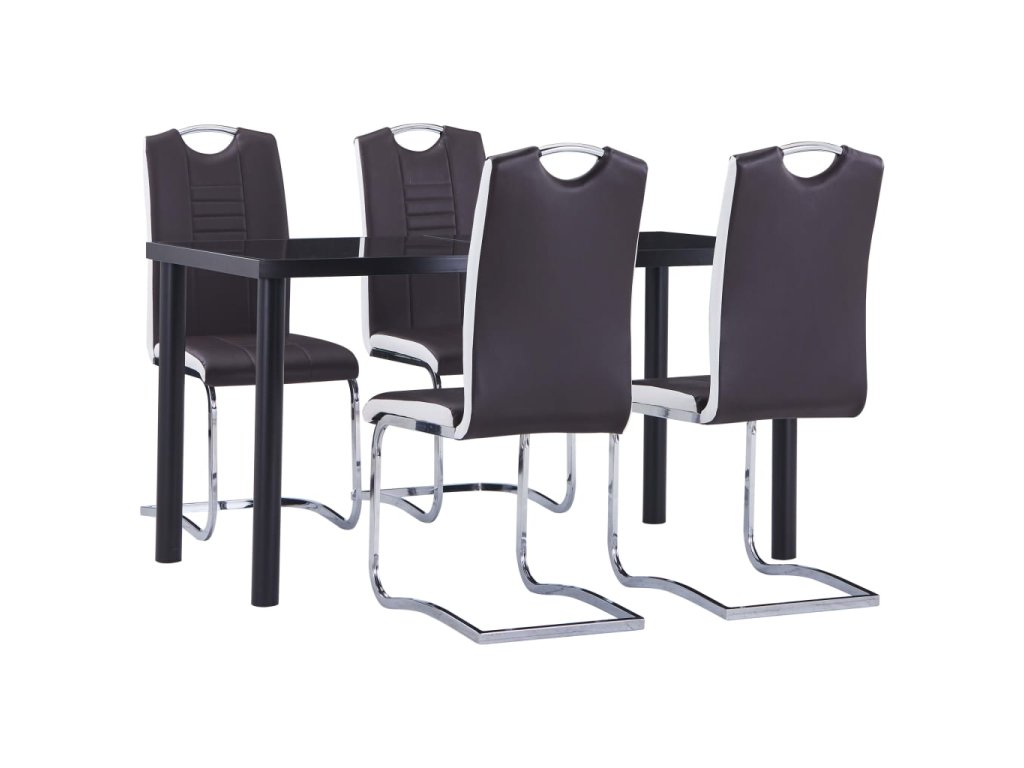 Stôl má hladkú dosku z tvrdeného skla, ktorá sa dá ľahko očistiť navlhčenou handričkou. Kovový rám s práškovou povrchovou úpravou poskytuje pevnú konštrukciu a prináša potrebnú stabilitu a trvácnosť. Stoličky s poťahom z mäkkej umelej kože majú hustú výplň pre čo najväčšie pohodlie. Vďaka ergonomickému dizajnu sa vám na jedálenskej stoličke bude sedieť naozaj príjemne. Pochrómovaný oceľový rám zabezpečuje mimoriadnu pevnosť a stabilitu. Na operadlách stoličiek sa navyše nachádza praktická rúčka, pomocou ktorej ich môžete jednoducho preniesť. Jedálenská súprava sa jednoducho montuje.