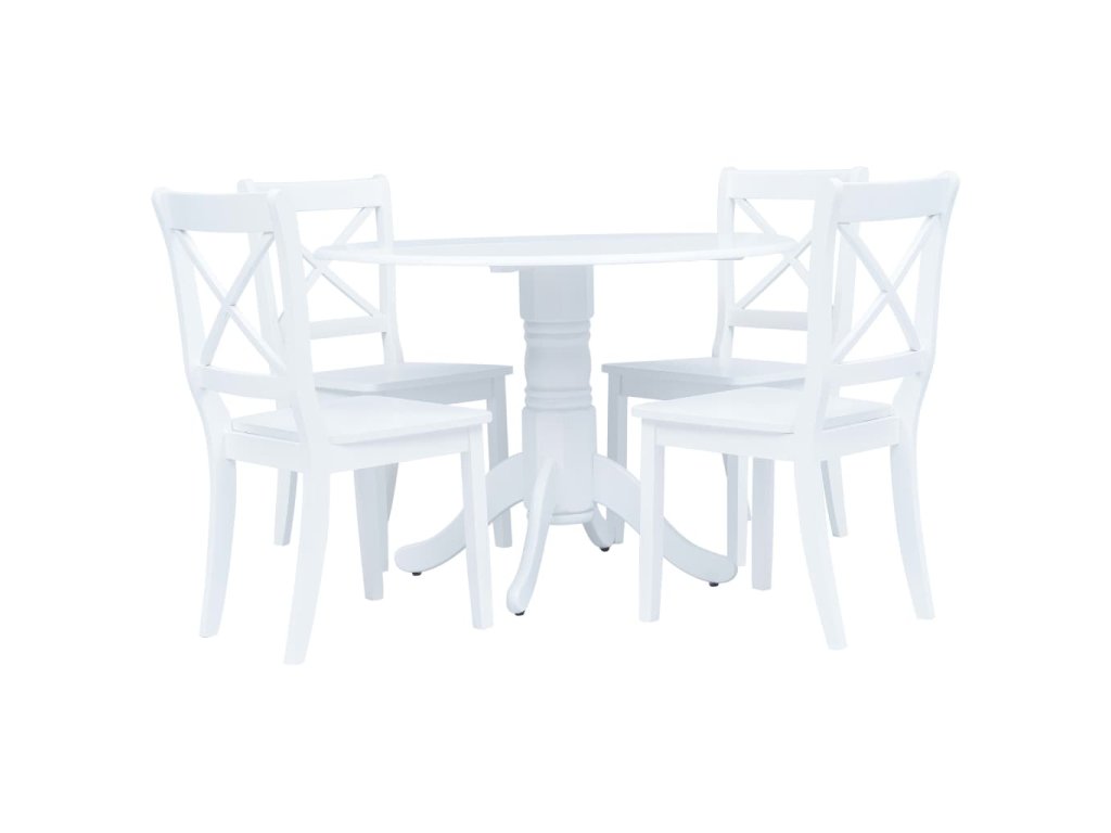 Rám stola a stoličiek je vyrobený z masívneho kaučukovníkového dreva je mimoriadne odolný a trvácny. Doska stola je vyrobená z MDF a poskytuje stabilné miesto na stolovanie. Vďaka leštenému, maľovanému a lakovanému povrchu sa jedálenská súprava ľahko čistí navlhčenou handričkou. Jednoduchá elegancia tejto jedálenskej súpravy ozvláštni každodenné večere.