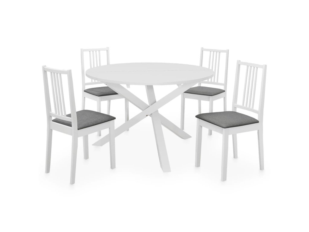 - Balenie obsahuje 1 jedálenský stôl a 4 jedálenské stoličky so sedákmi